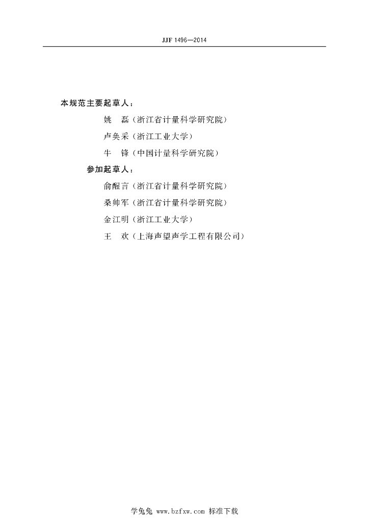 姚磊(浙江省计量科学研究院)、卢矣采(浙江工业大学)、牛锋(中国计量科学研究院)、俞醒言(浙江省计量科学研究院)、桑帅军(浙江省计量科学研究院)、金江明(浙江工业大学)、王欢(上海声望声学工程有限公司)