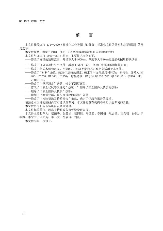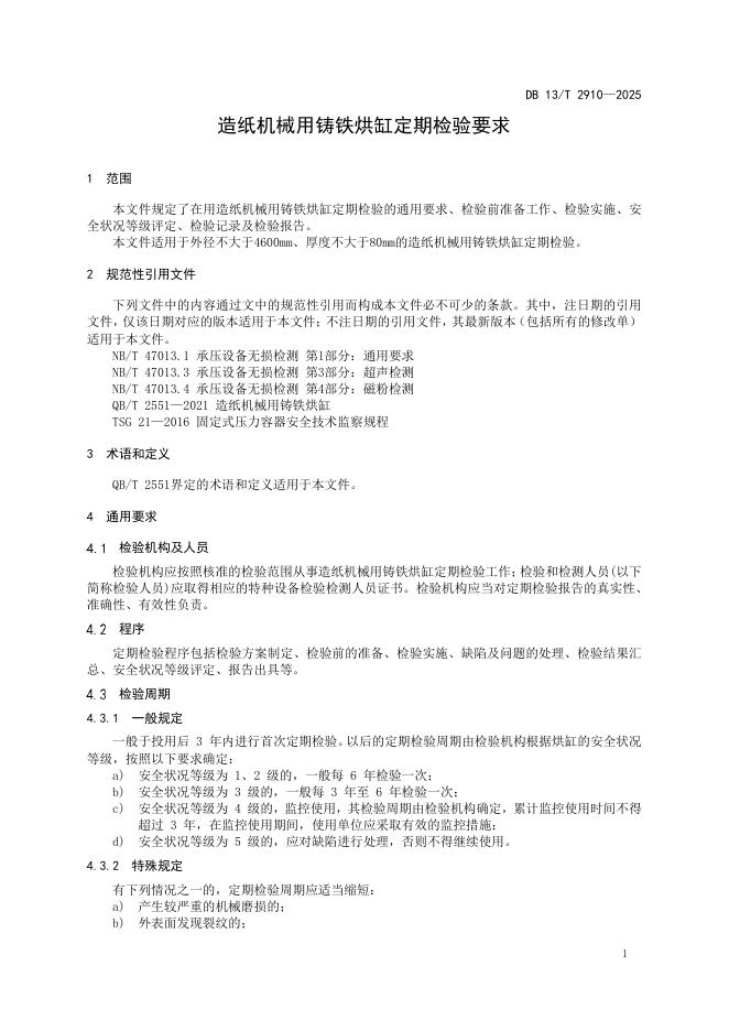 DB13/T 2910-2025 造纸机械用铸铁烘缸定期检验要求