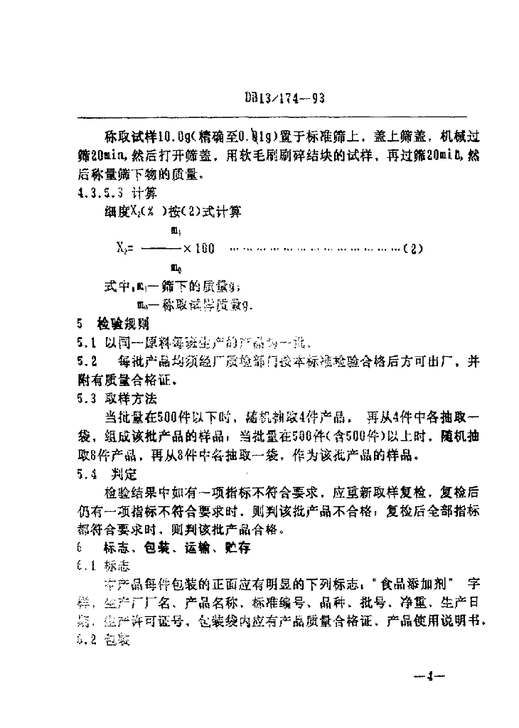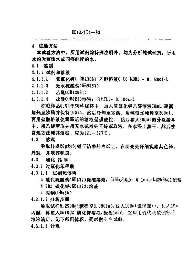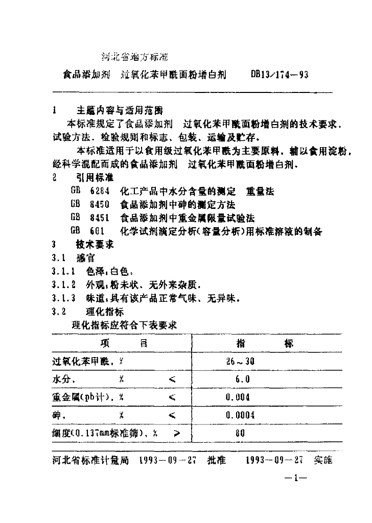 DB13/ 174-1993 食品添加剂 过氧化苯甲酰面粉增白剂
