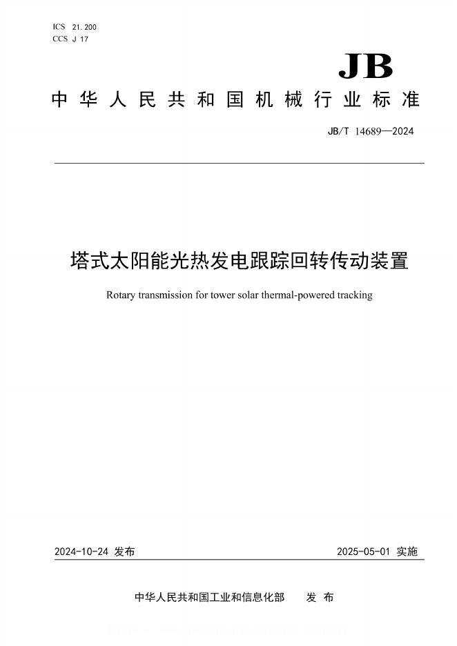 JB/T 14689-2024 塔式太阳能光热发电跟踪回转传动装置