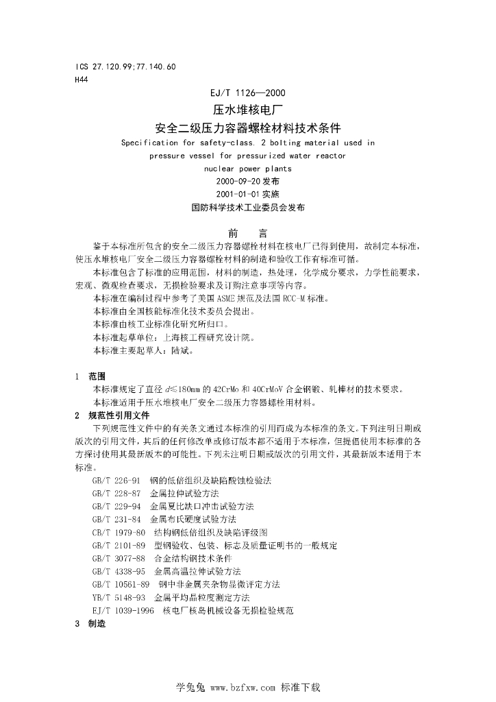 EJ/T 1126-2000 安全二级压力容器螺栓材料技术条件