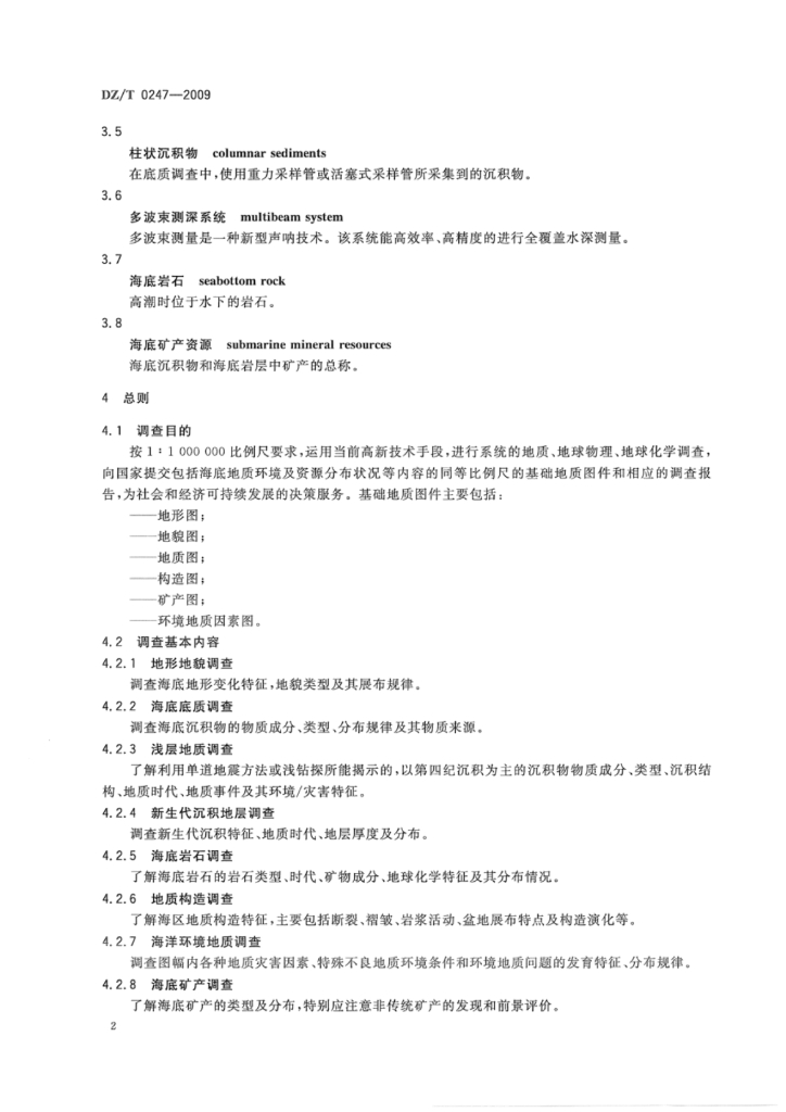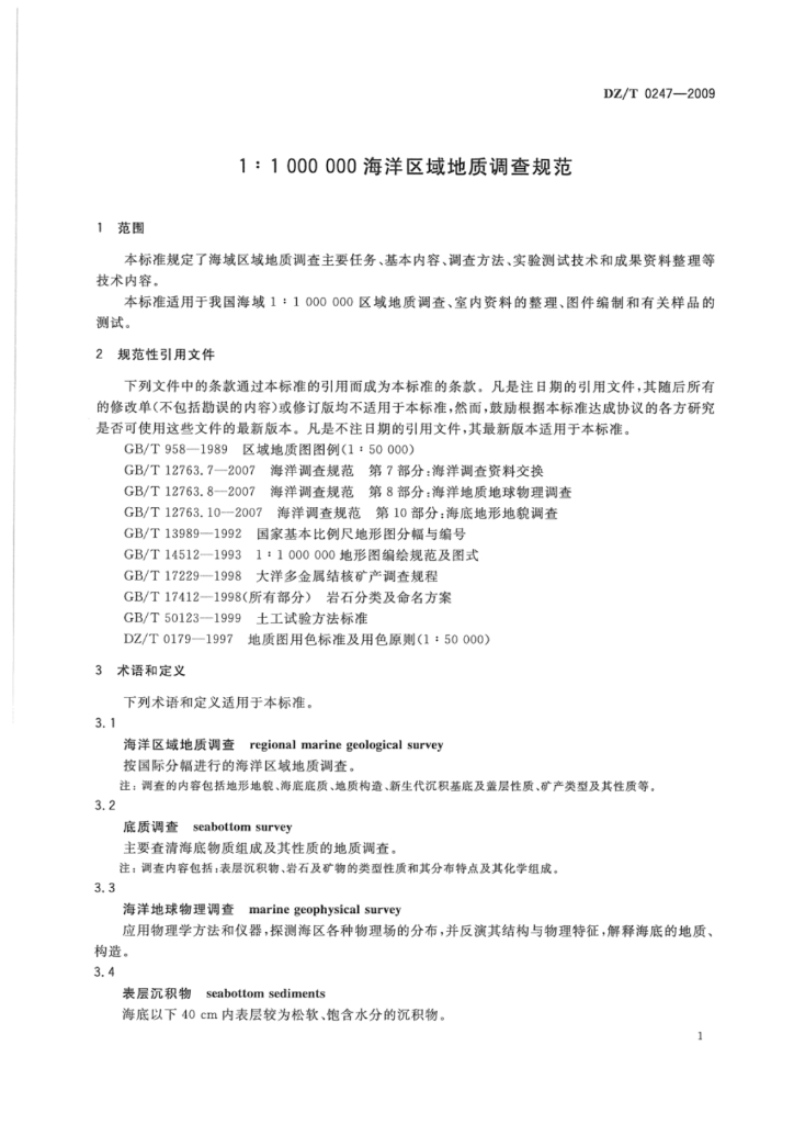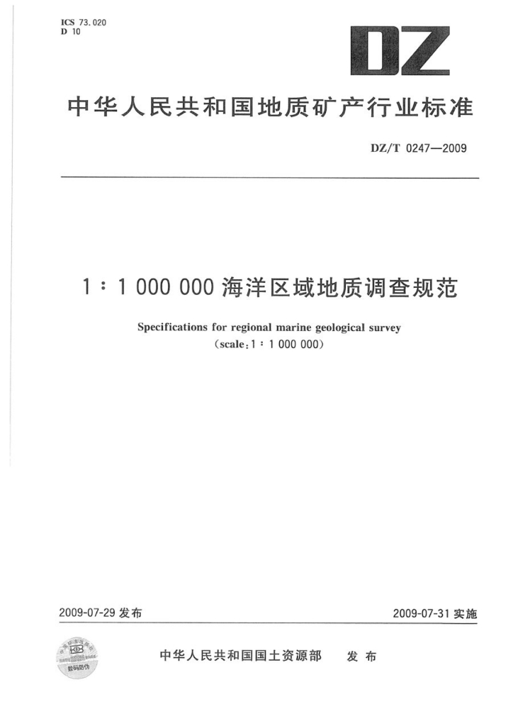 DZ/T 247-2009 1:1000000海洋区域地质调查规范