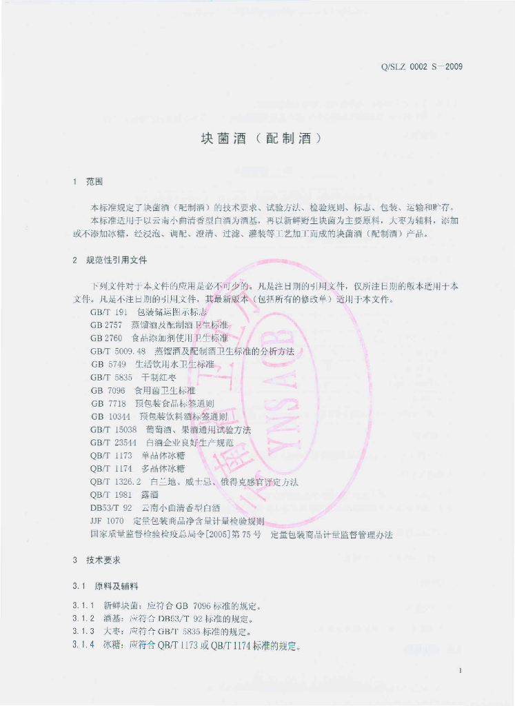 Q/SLZ 0002S-2009 块菌酒(配制酒)