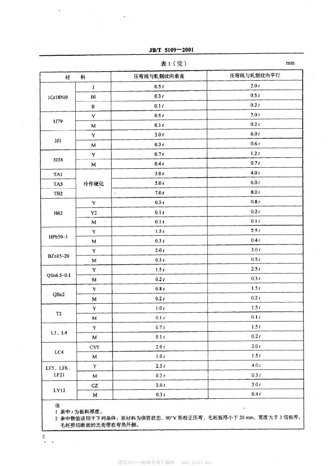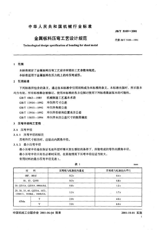 JB/T 5109-1991 金属板料压弯工艺设计规范