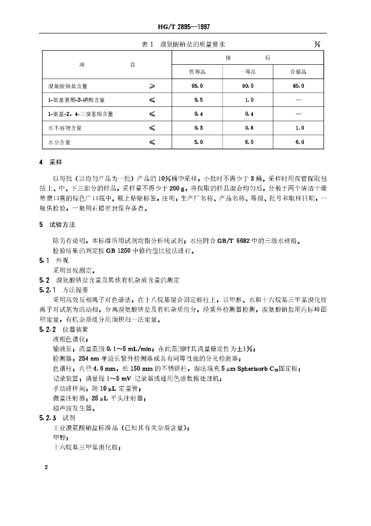 HG/T 2895-1997 溴氨酸钠盐(1-氨基-4-溴蒽醌-2-磺酸钠)