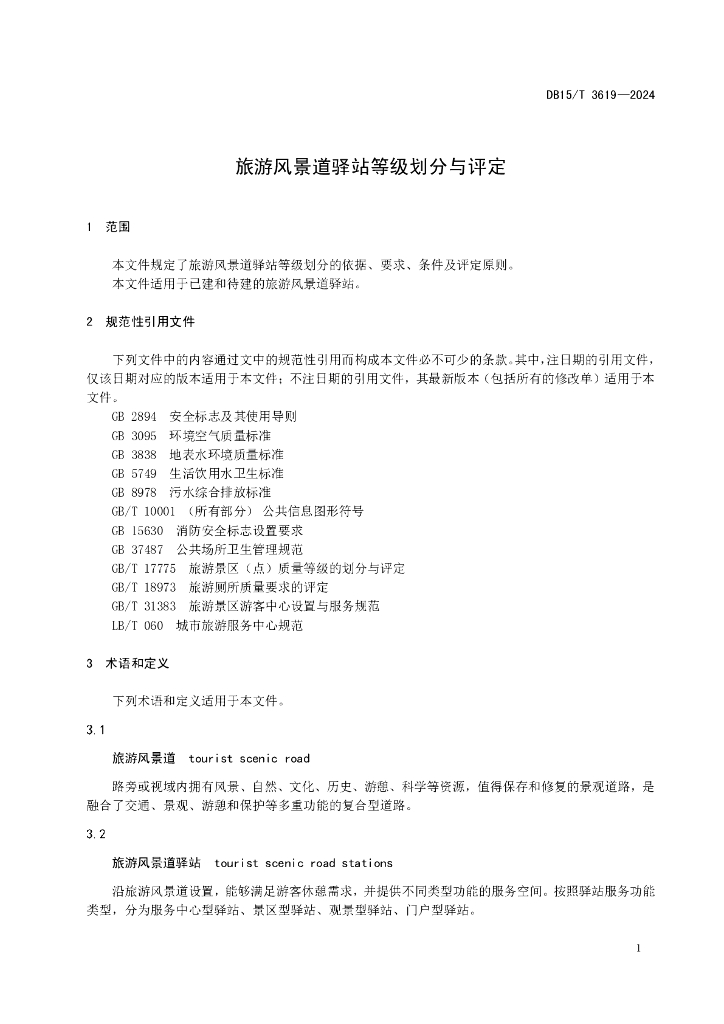 DB15/T 3619-2024 旅游风景道驿站等级划分与评定