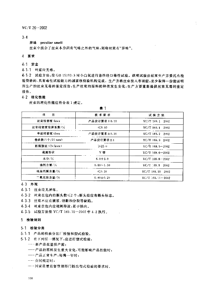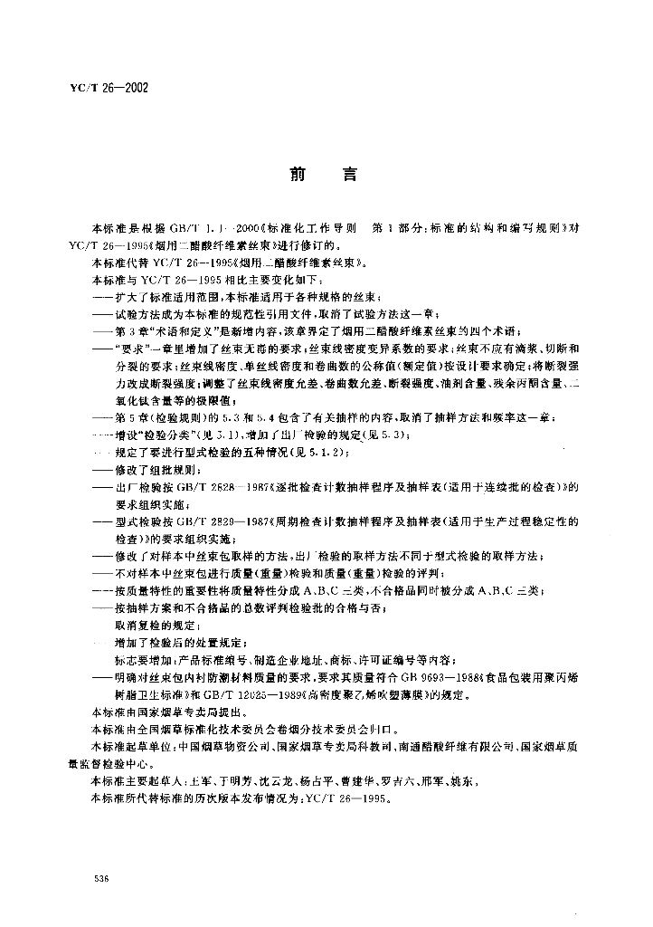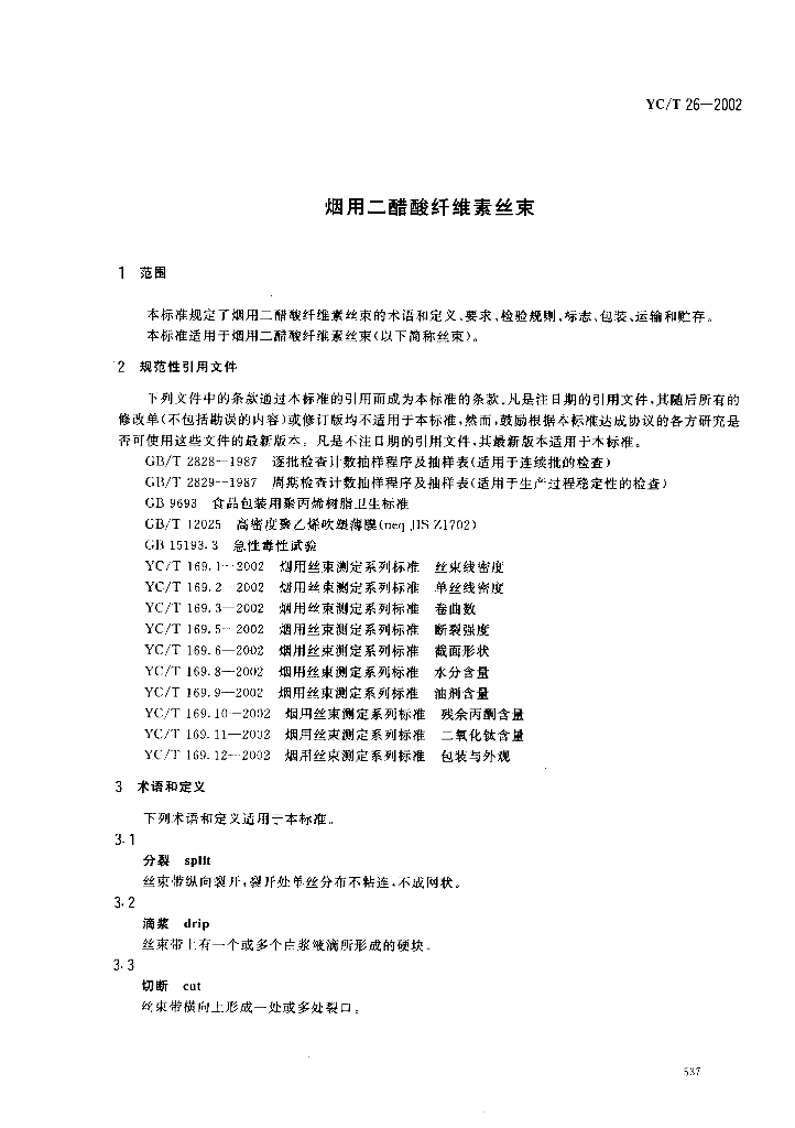 YC/T 26-2002 烟用二醋酸纤维素丝束