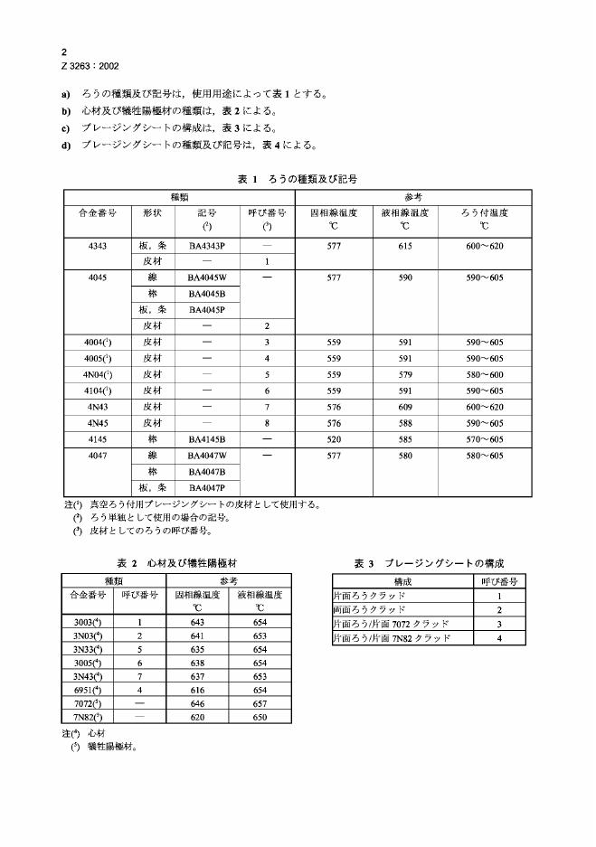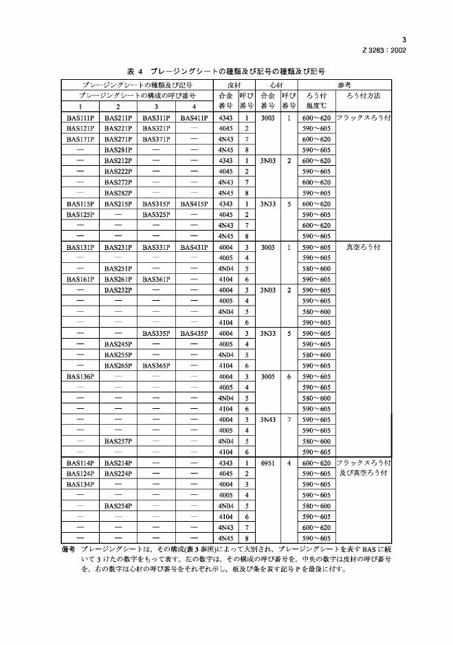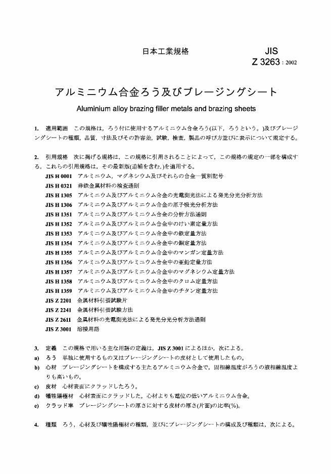 JIS Z3263-2002 铝合金硬钎焊填料金属及硬钎接金属片