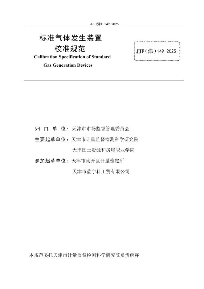 JJF(津)149-2025 标准气体发生装置校准规范