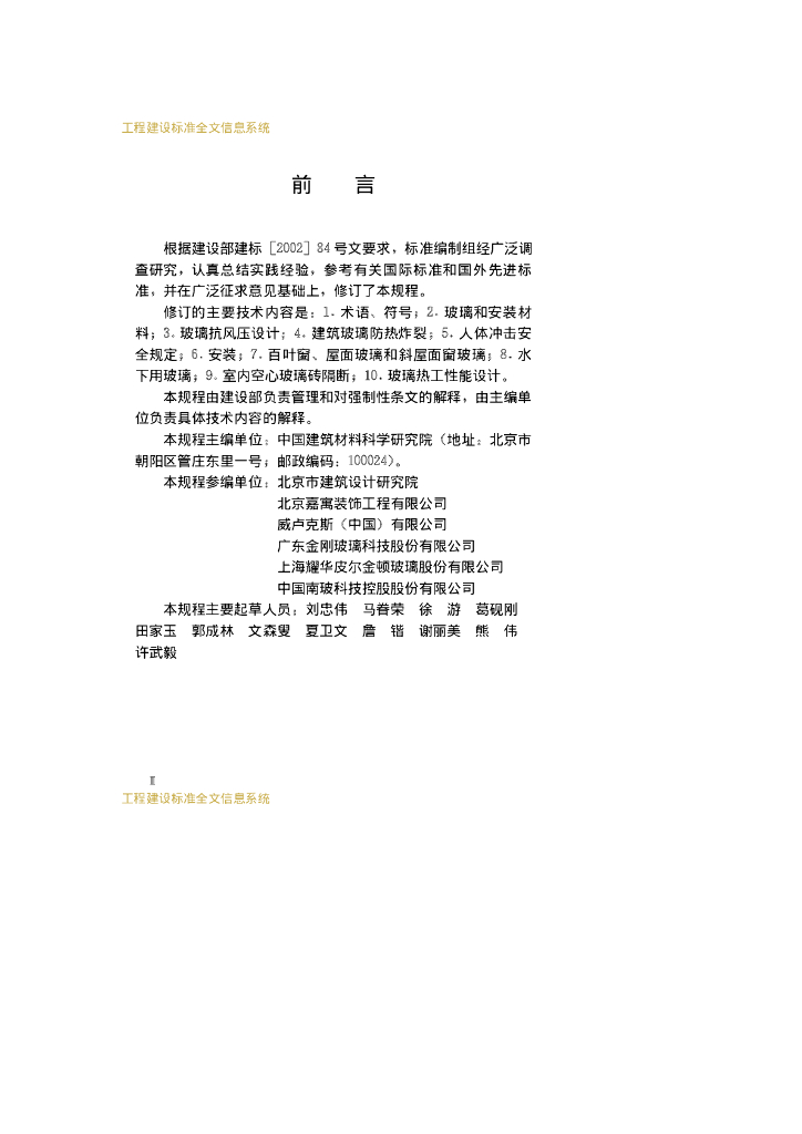 中国建筑材料科学研究院、北京市建筑设计研究院、北京嘉寓装饰工程有限公司、威卢克斯(中国)有限公司、广东金刚玻璃科技股份有限公司、上海耀华皮尔金顿玻璃股份有限公司、中国南玻科技控股股份有限公司