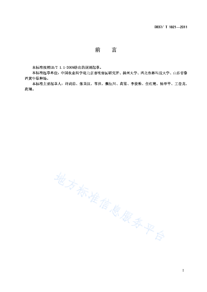 DB37/T 1821-2011 鲁西黄牛选育技术规范
