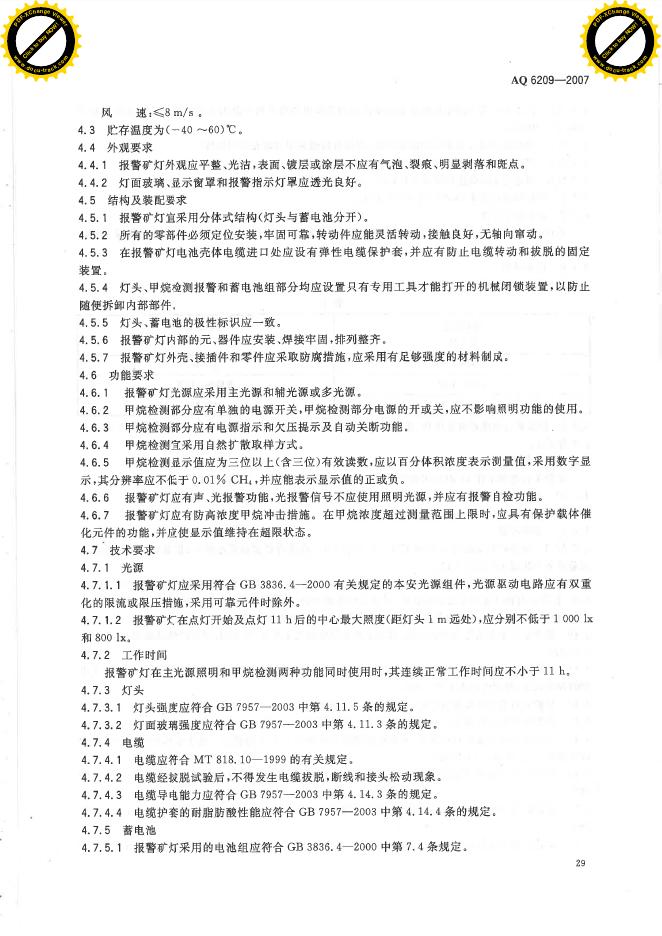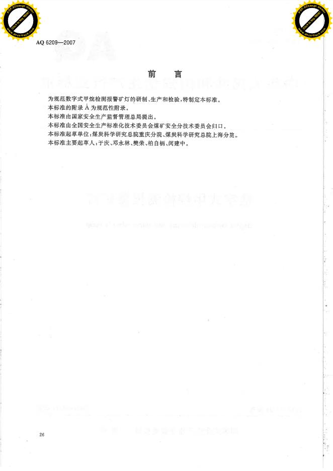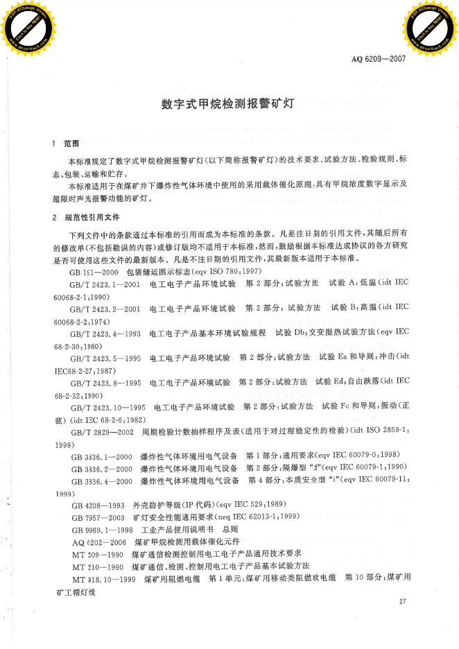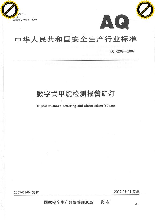 AQ/T 6209-2007 数字式甲烷检测报警矿灯