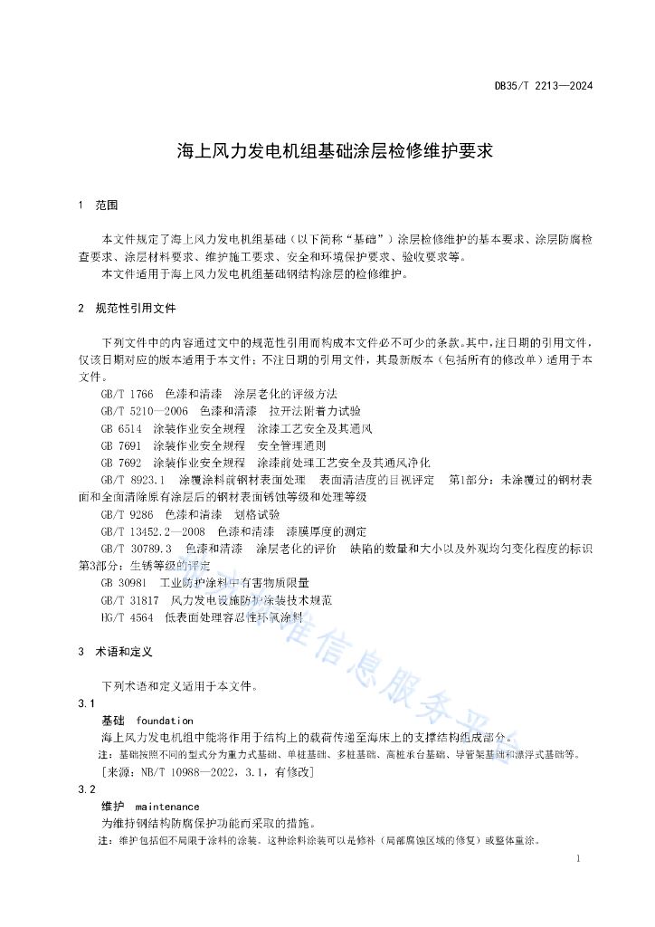 DB35/T 2213-2024 海上风力发电机组基础涂层检修维护要求