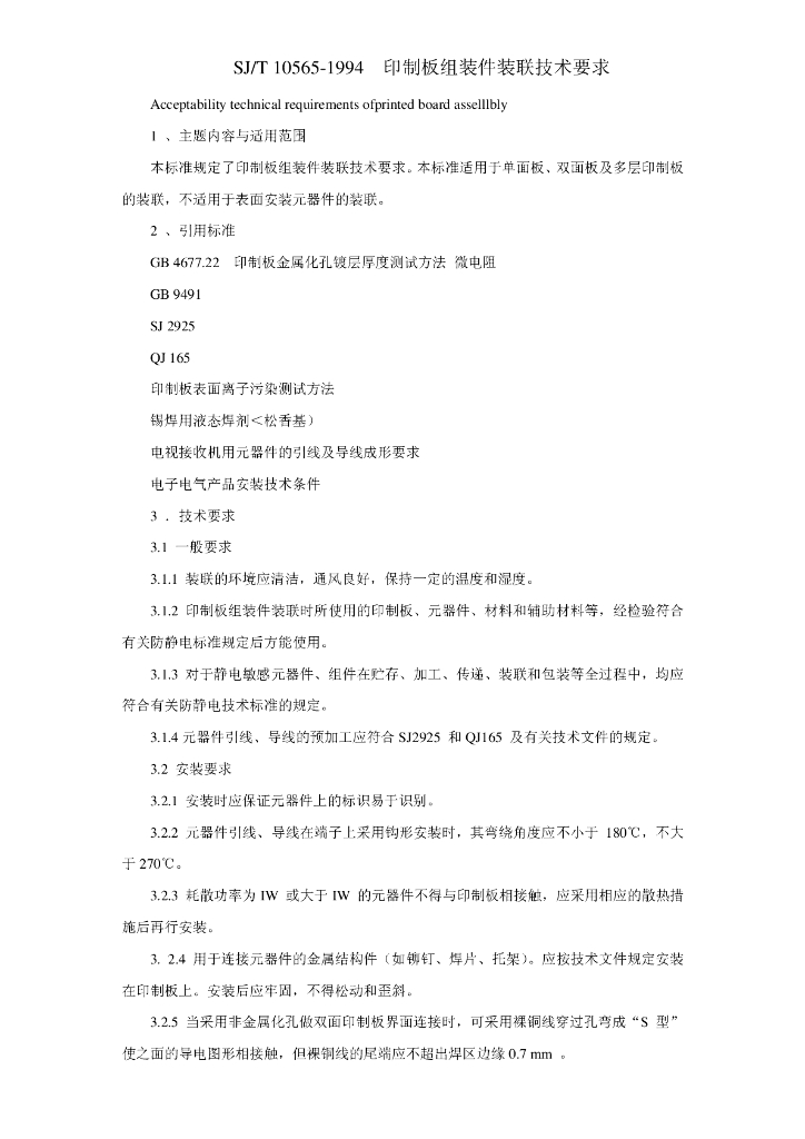 SJ/T 10565-1994 印制板组装件装联技术要求
