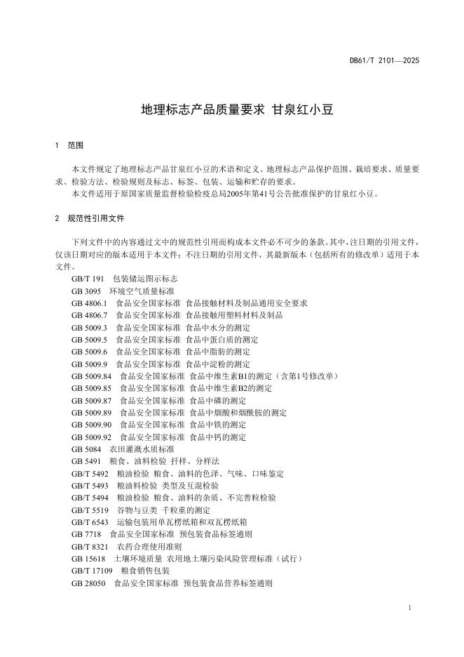 DB61/T 2101-2025 地理标志产品质量要求 甘泉红小豆