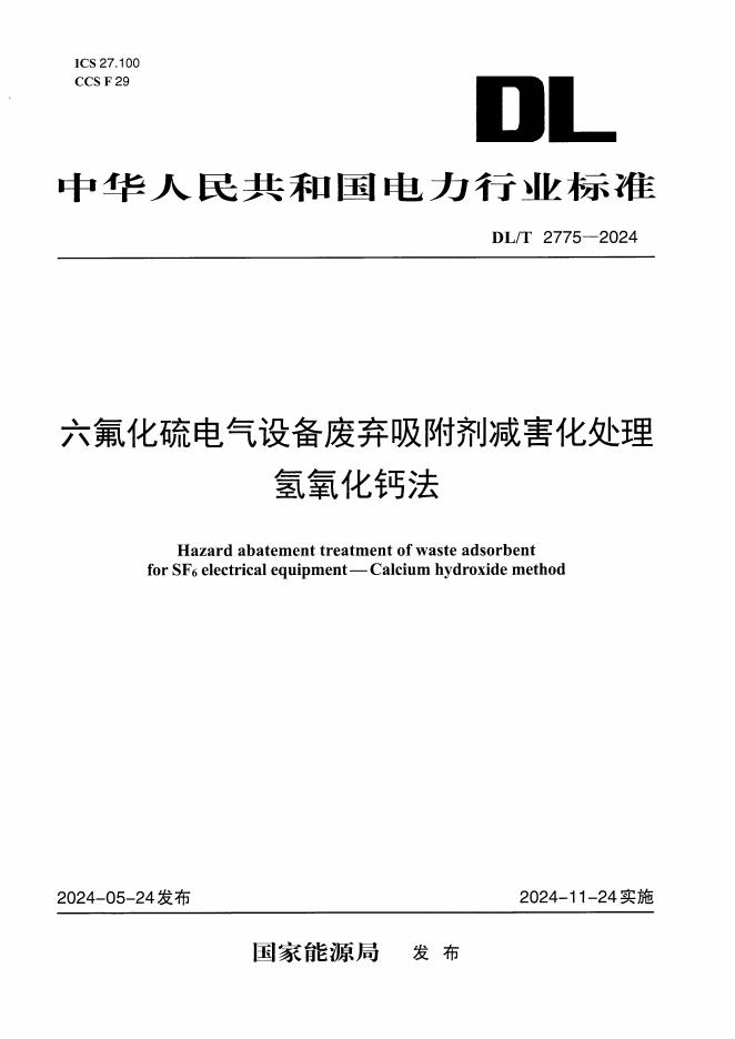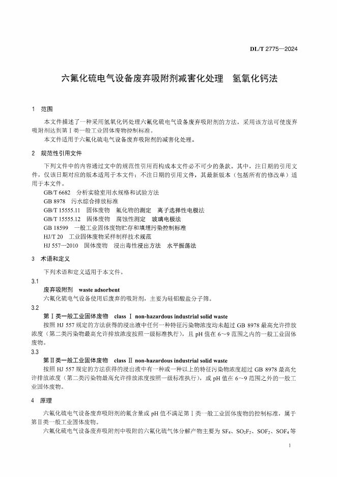 DL/T 2775-2024 六氟化硫电气设备废弃吸附剂减害化处理 氢氧化钙法
