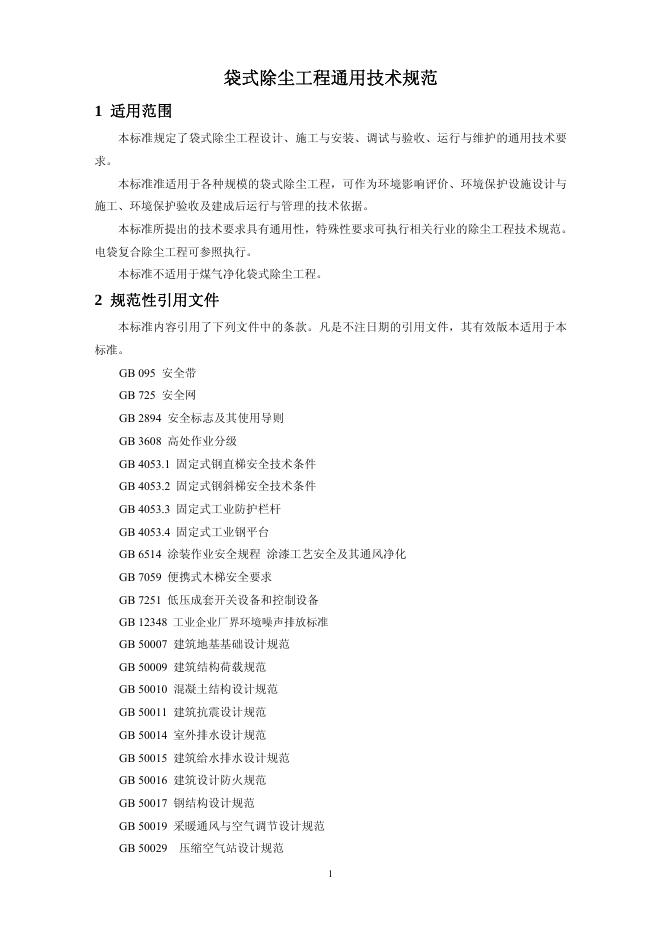 HJ 2020-2012 袋式除尘工程通用技术规范