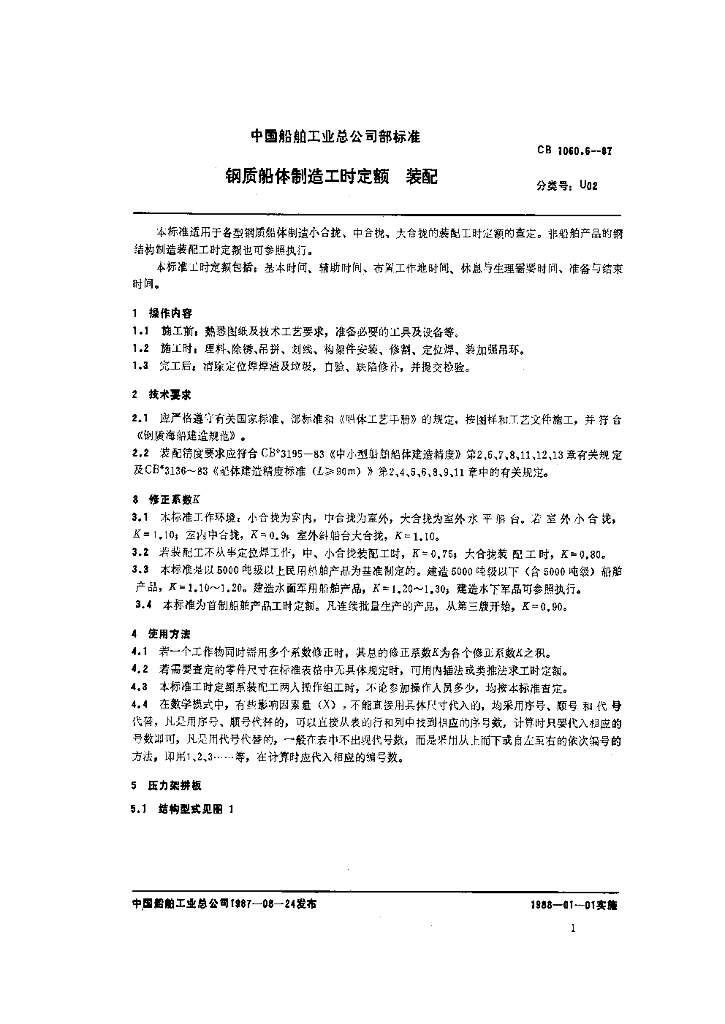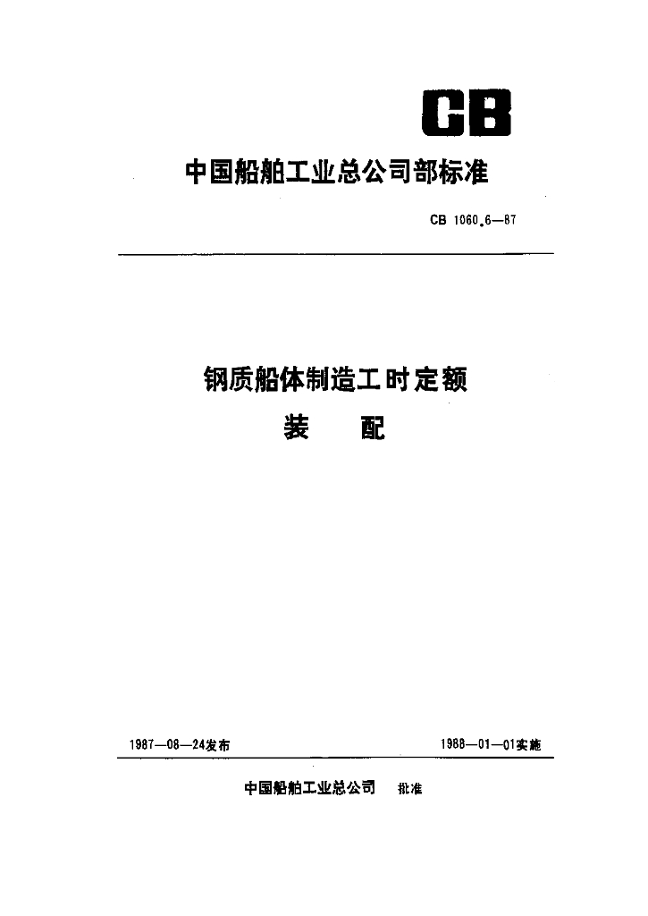 CB 1060.6-1987 钢质船体制造工时定额装配