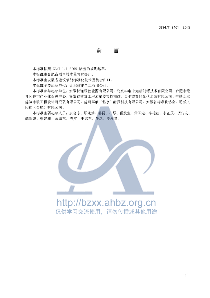 合肥微纳电工有限公司。本规程参编单位:安徽长远绿色能源有限公司、北京华电中光新能源技术有限公司、合肥市经开区住宅产业化促进中心、安徽省建筑工程质量监督检测站、合肥波赛顿光伏水泵有限公司、中铁合肥建筑市