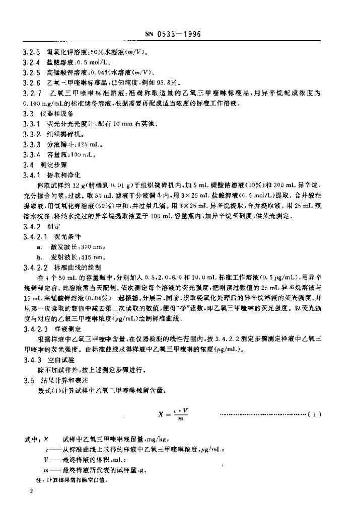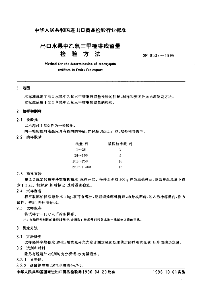 SN 0533-1996 出口水果中乙氧三甲喹啉残留量检验方法