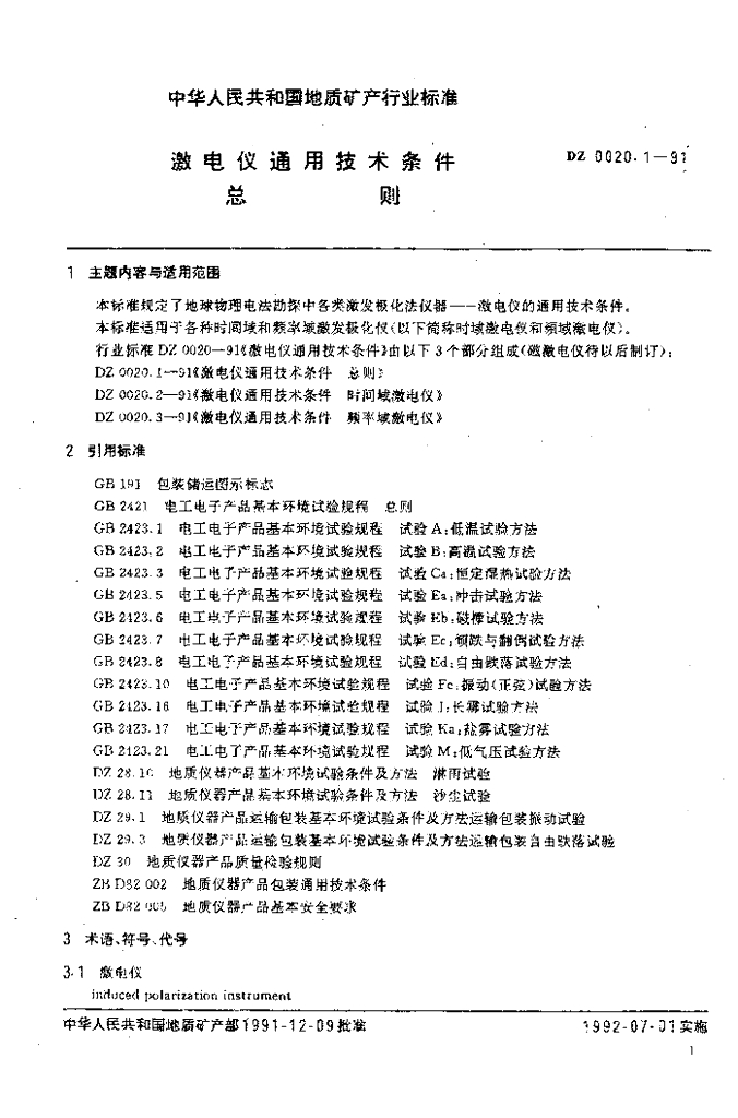 DZ 0020.1-1991 激电仪通用技术条件总则
