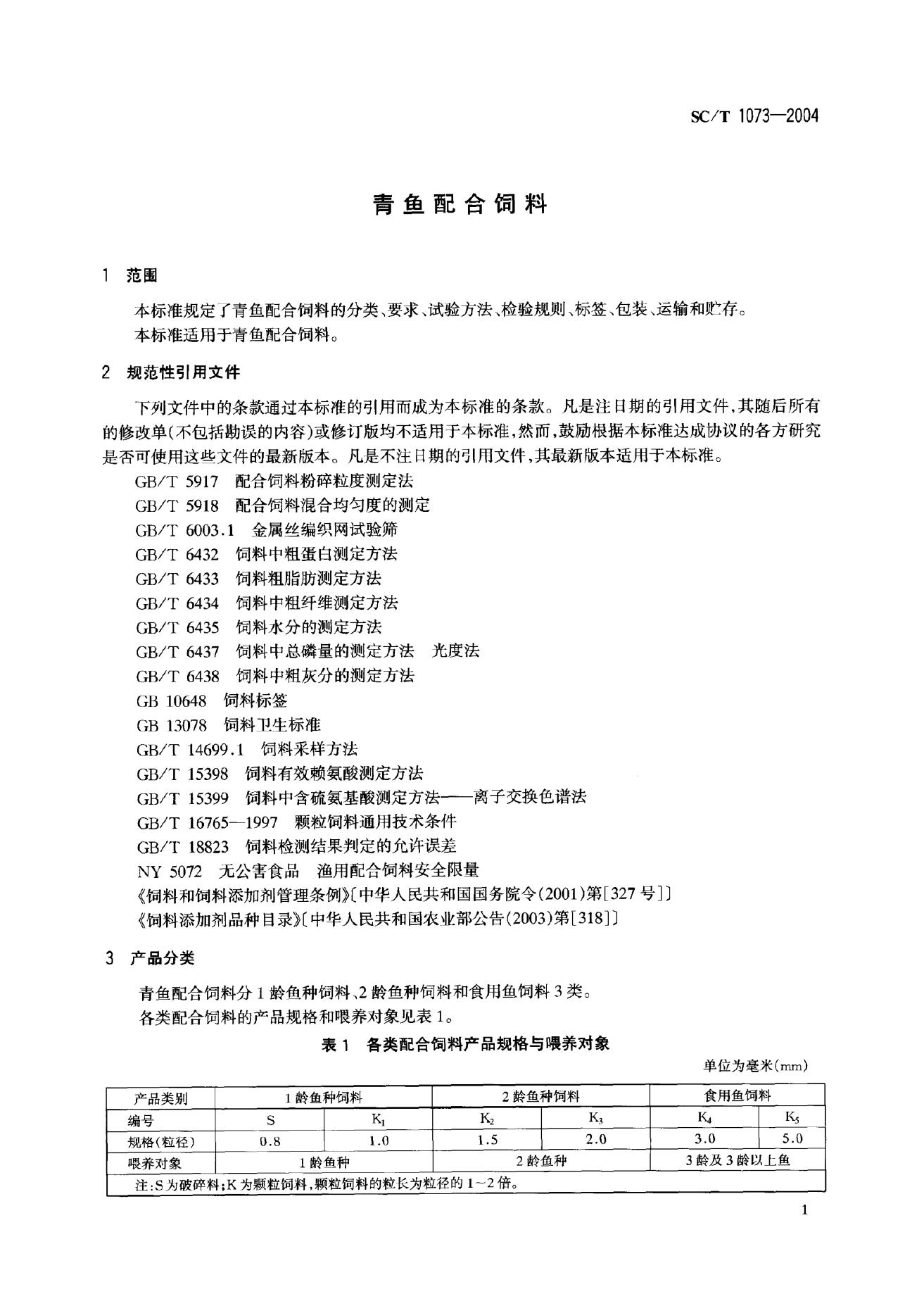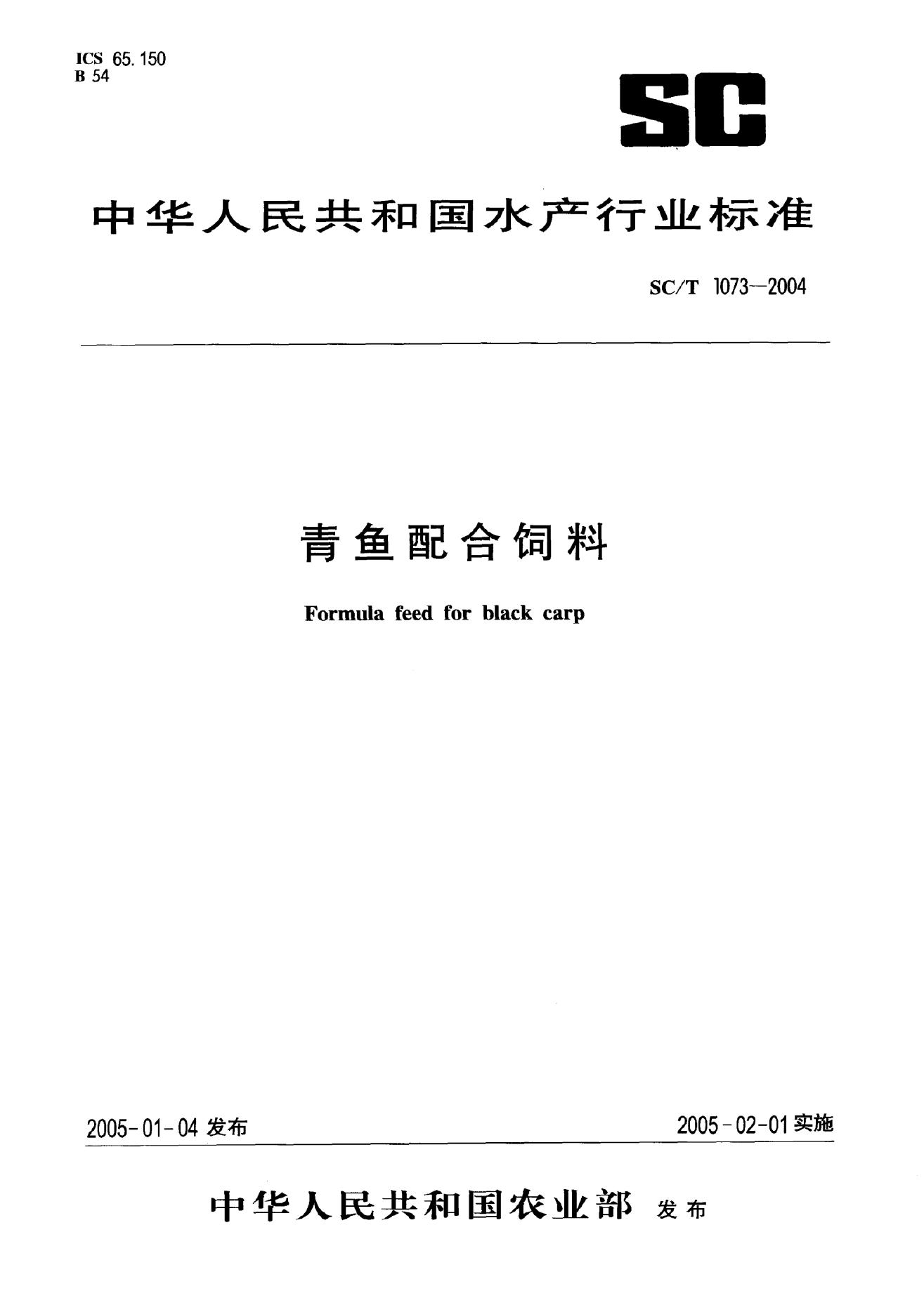 SC/T 1073-2004 青鱼配合饲料