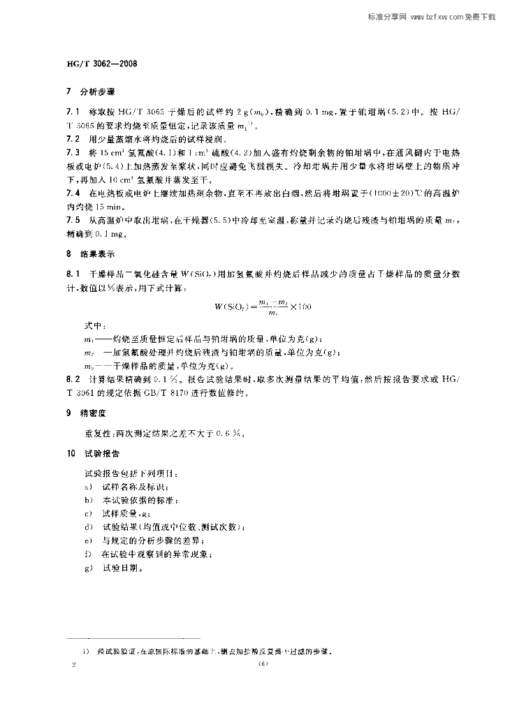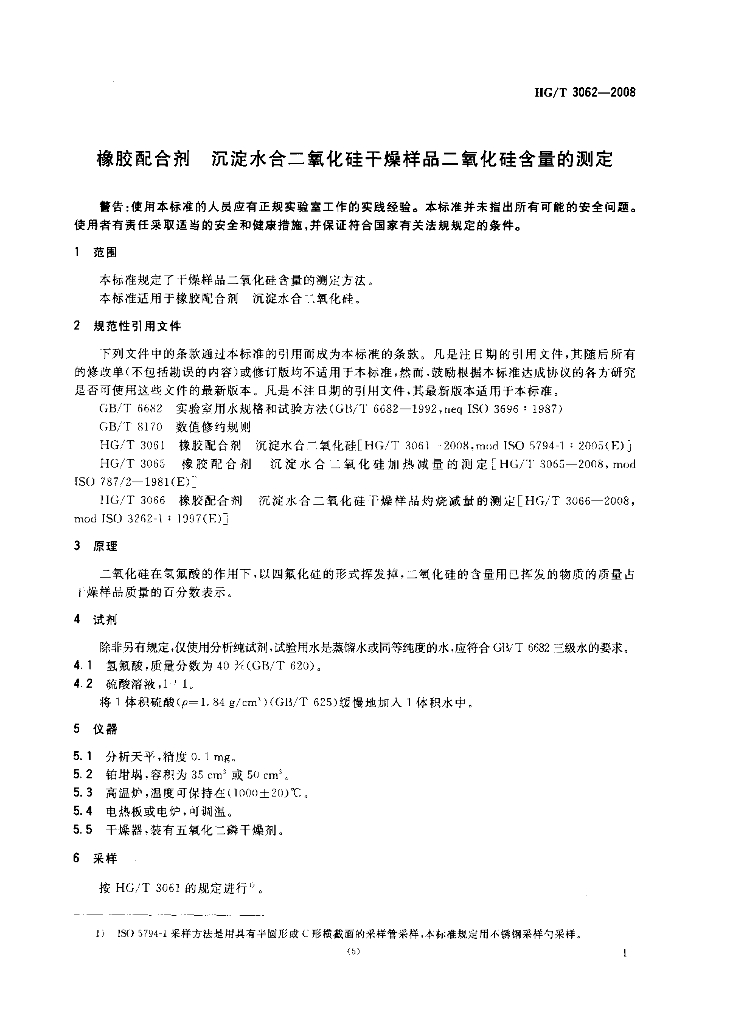 HG/T 3062-2008 橡胶配合剂 沉淀水合二氧化硅干燥样品二氧化硅含量的测定
