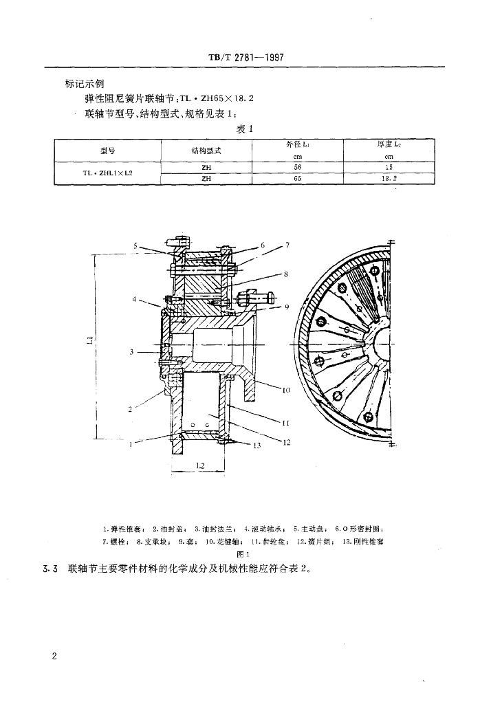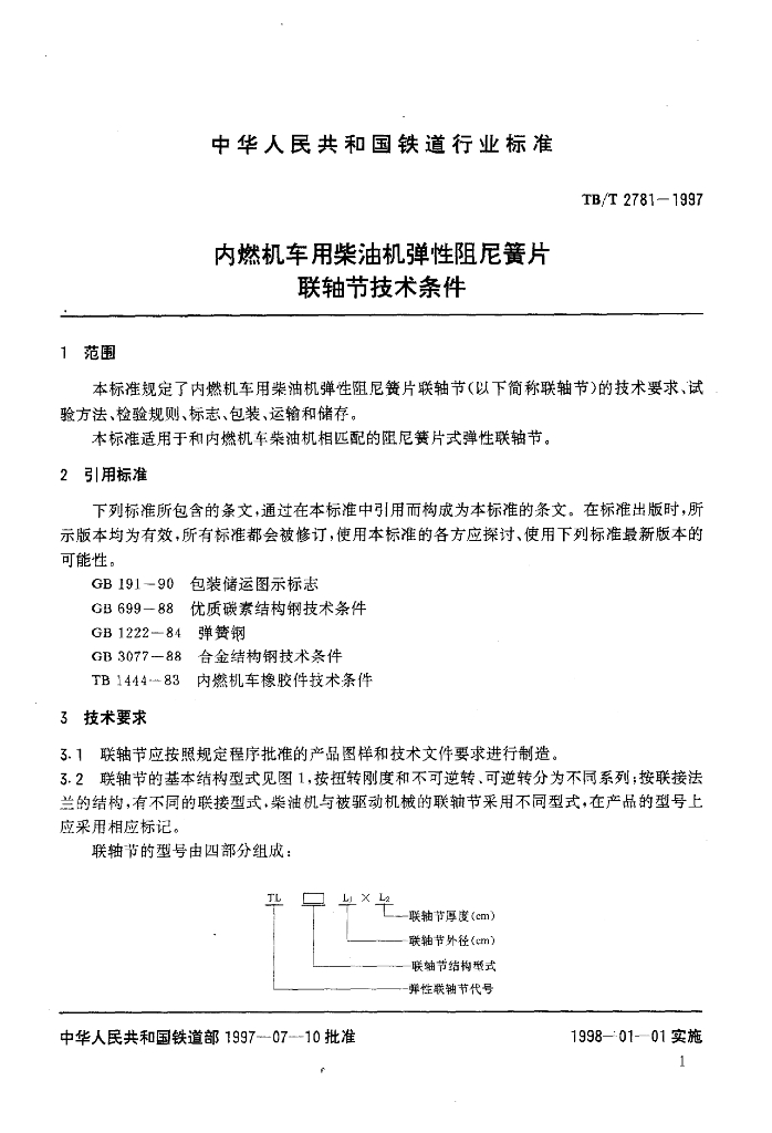 TB/T 2781-1997 内燃机车用柴油机弹性阻尼簧片联轴节技术条件