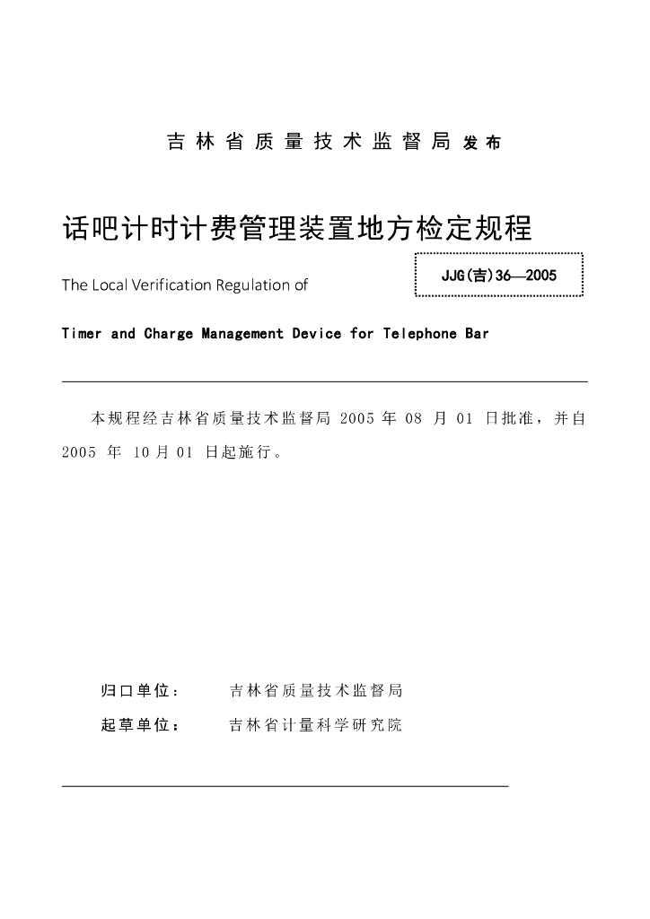 JJG(吉)36-2005 话吧计时计费管理装置