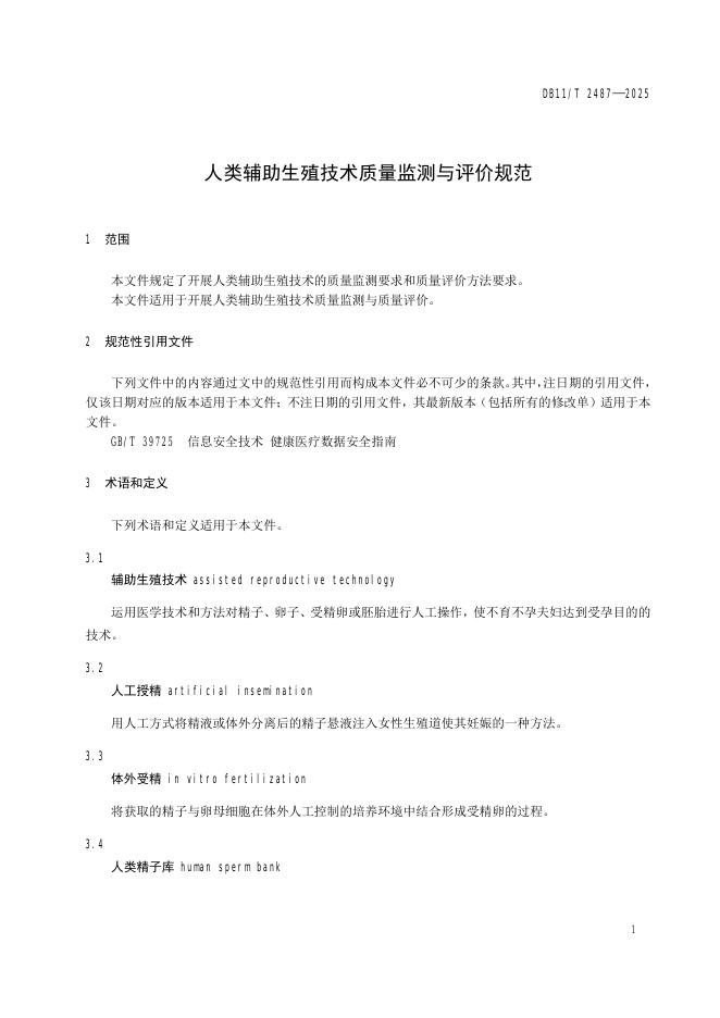 DB11/T 2487-2025 人类辅助生殖技术质量监测与评价规范