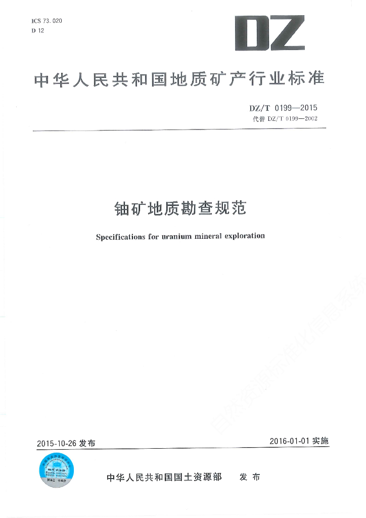 DZ/T 0199-2002 铀矿地质勘查规范