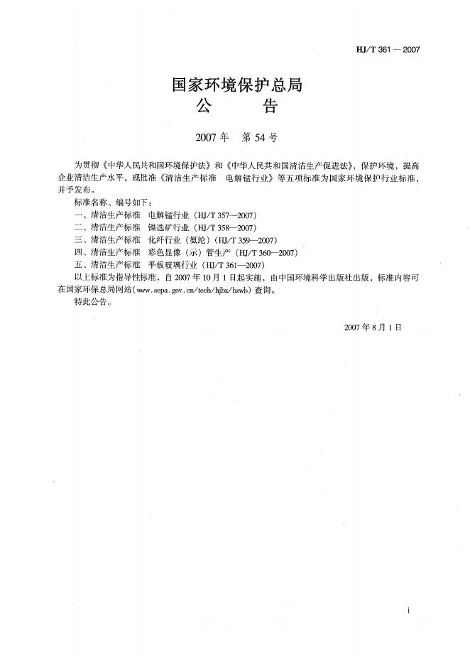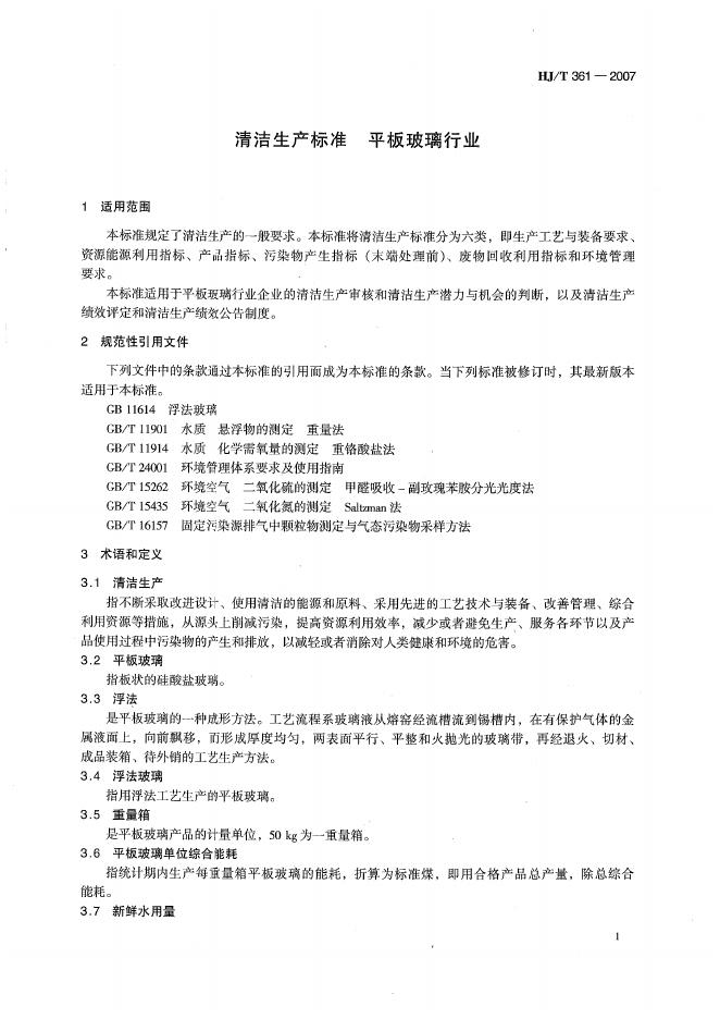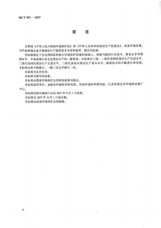 HJ/T 361-2007 清洁生产标准? 平板玻璃行业