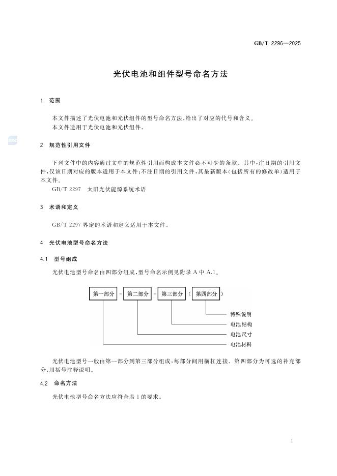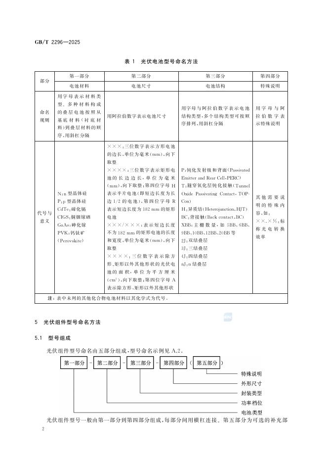 GB/T 2296-2025 光伏电池和组件型号命名方法