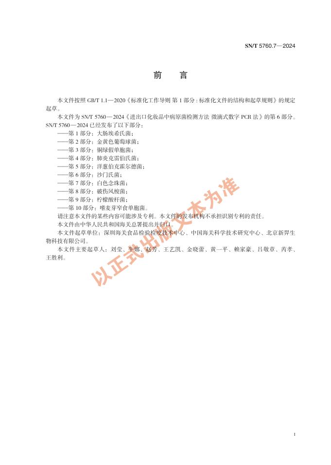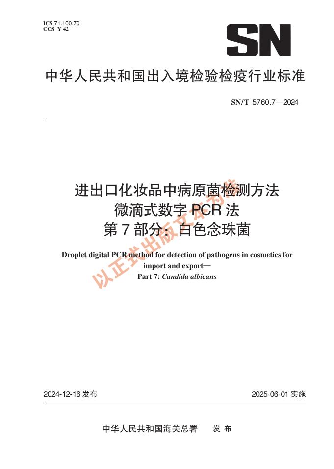 SN/T 5760.7-2024 出口化妆品中病原菌检测方法 微滴式数字PCR法 第7部分:白色念珠菌