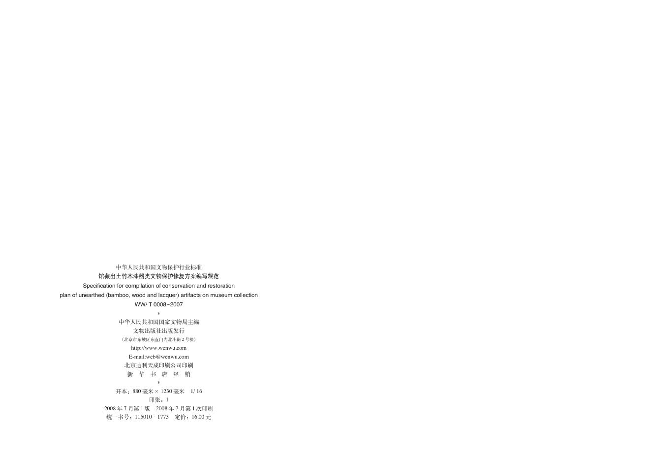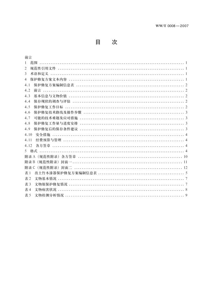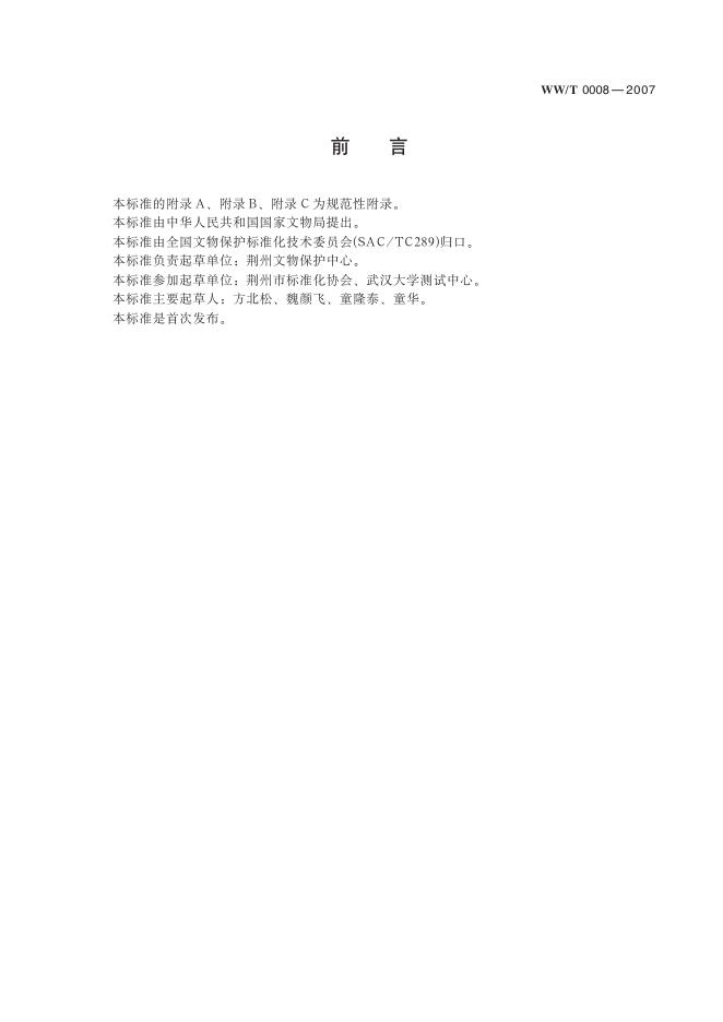 WW/T 0008-2007 馆藏出土竹木漆器类文物保护修复方案编写规范