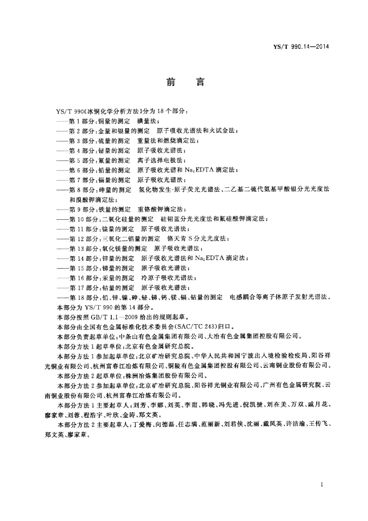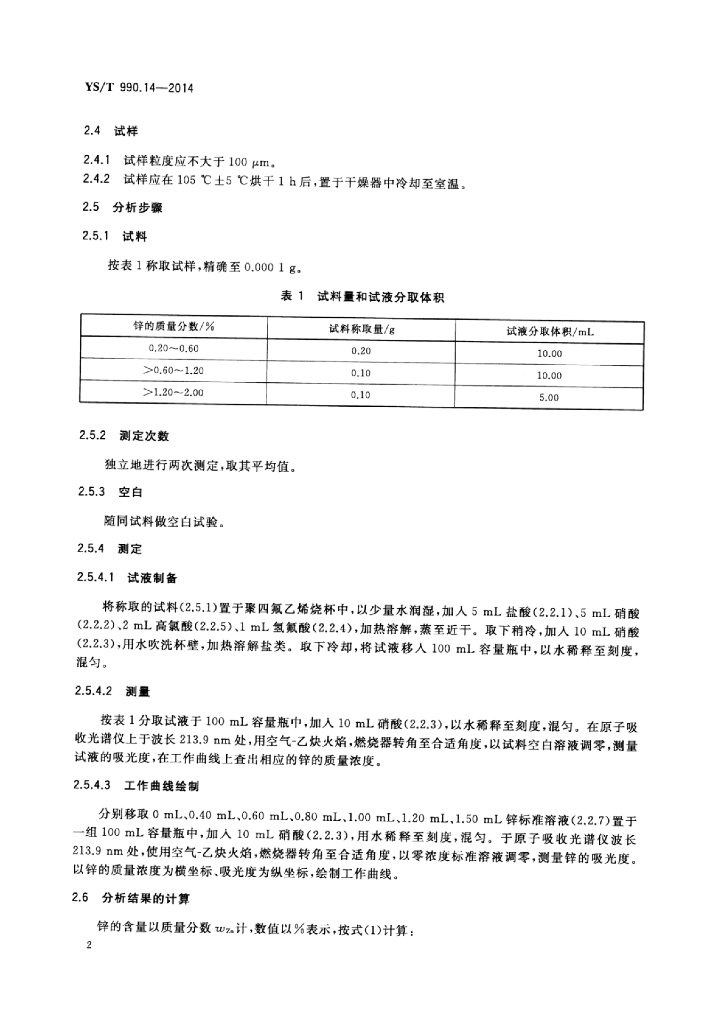 YS/T 990.14-2014 冰铜化学分析方法 第14部分:锌量的测定原子吸收光谱法和Na2EDTA滴定法