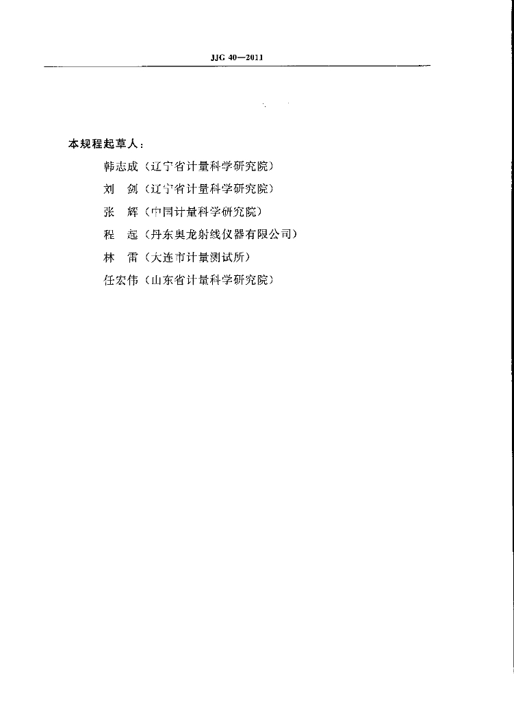 韩志成(辽宁省计量科学研究院)、刘剑(辽宁省计量科学研究院)、张辉(中国计量科学研究院)、程起(丹东奥龙射线仪器有限公司)、林雷(大连市计量测试所)、任宏伟(山东省计量科学研究院)