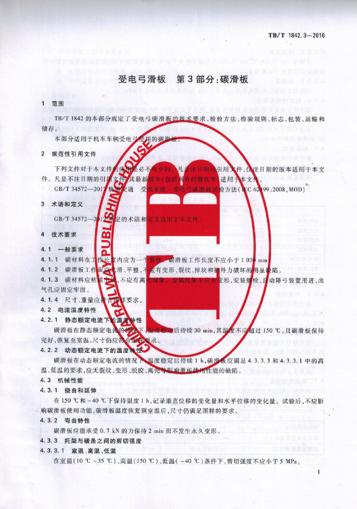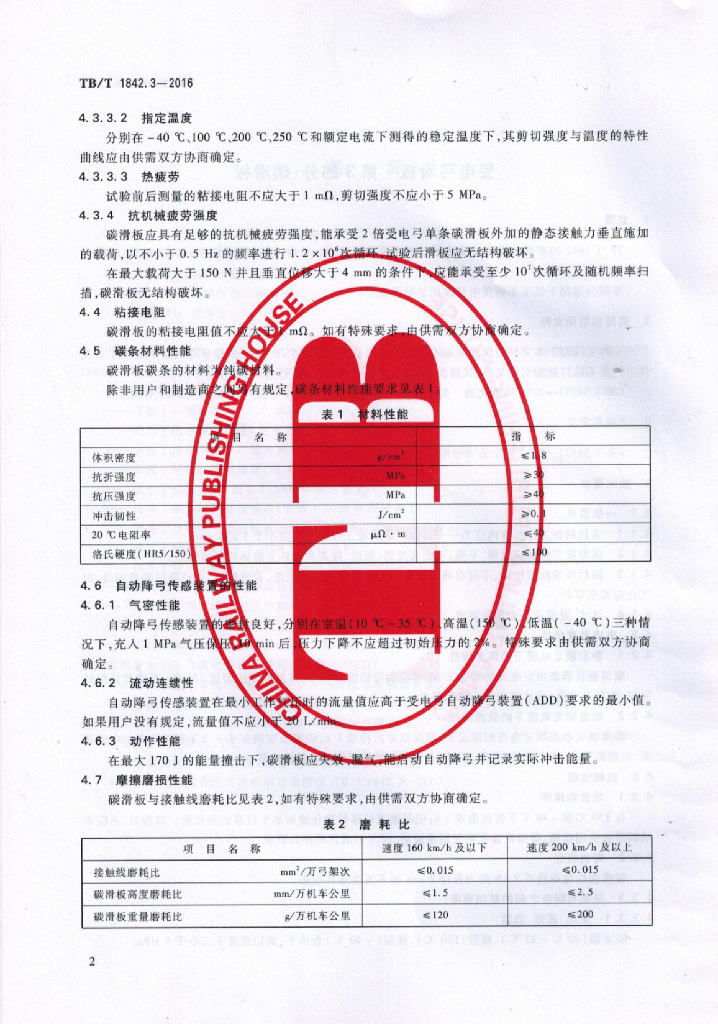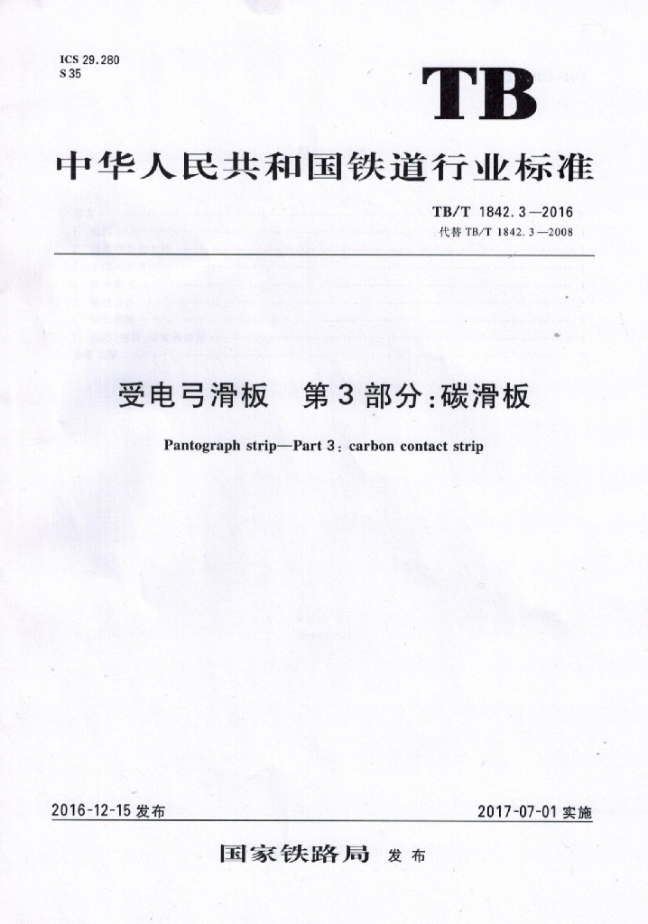 TB/T 1842.3-2016 受电弓滑板 第3部分:碳滑板