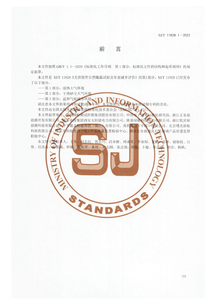 - 提出单位:全国太阳光伏能源系统标准化技术委员