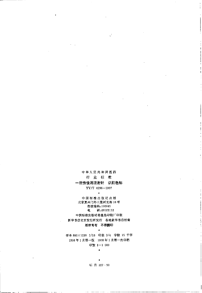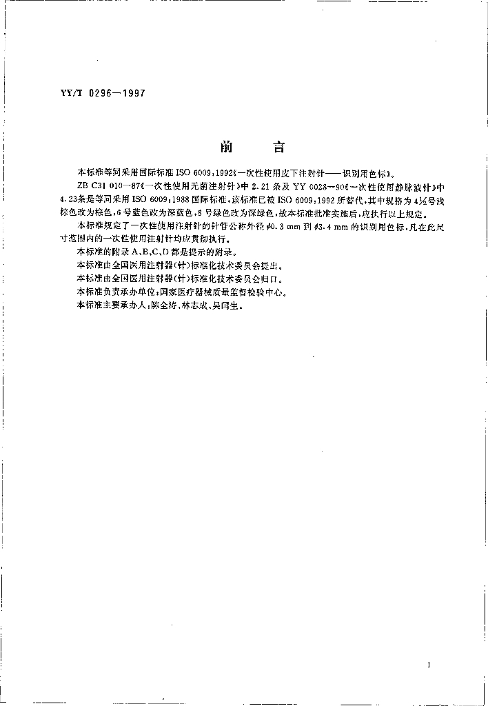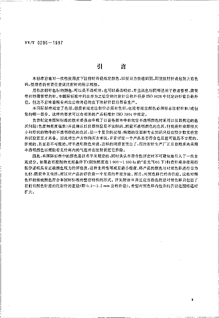 YY/T 0296-1997 一次性使用注射针识别色标