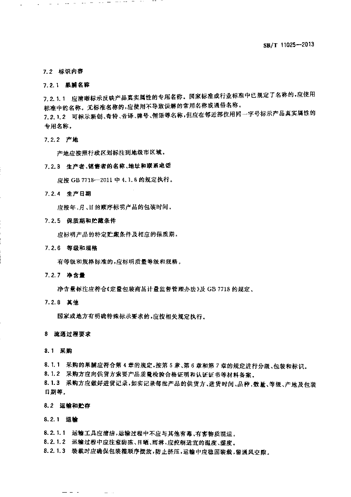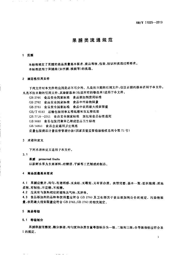 SB/T 11025-2013 果脯类流通规范