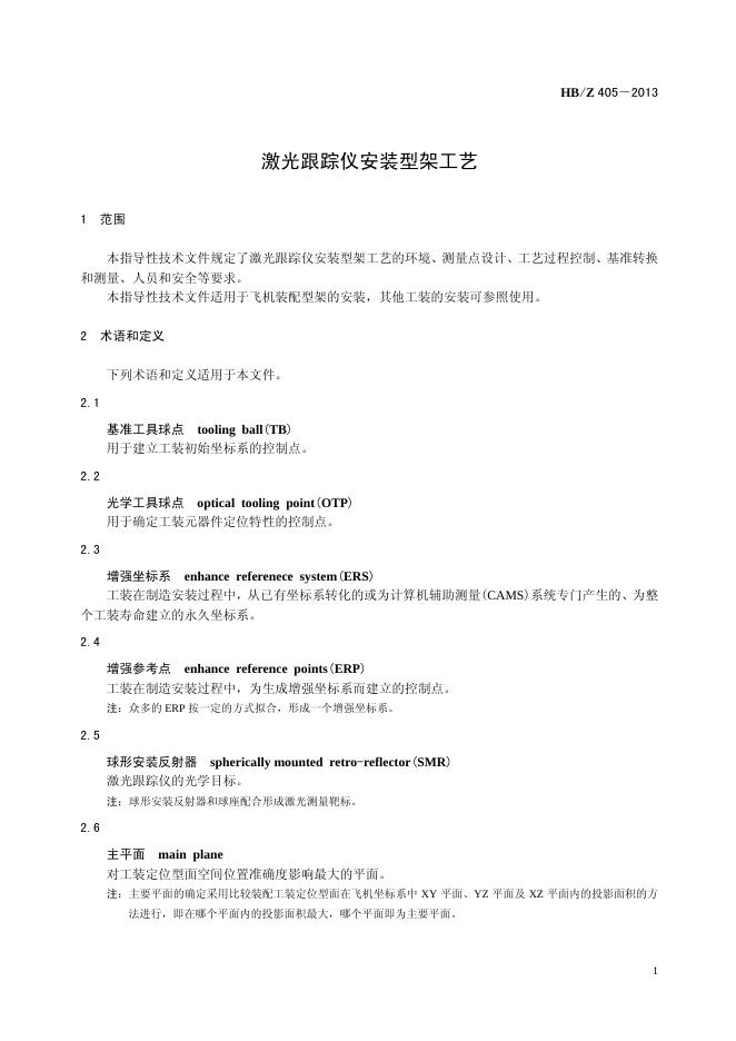 HB/Z 405-2013(2017) 激光跟踪仪安装型架工艺