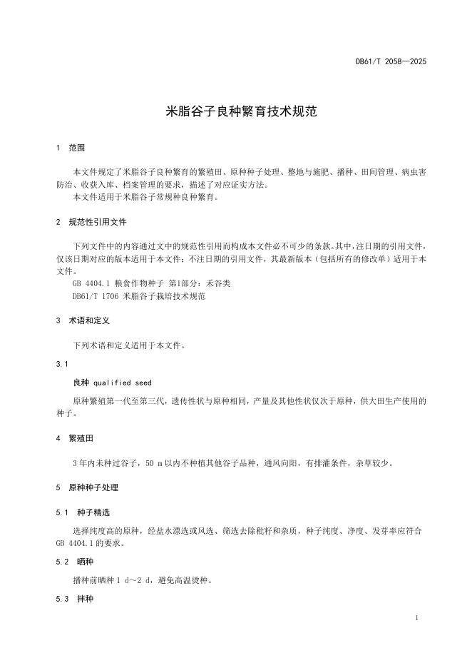 DB61/T 2058-2025 米脂谷子良种繁育技术规范