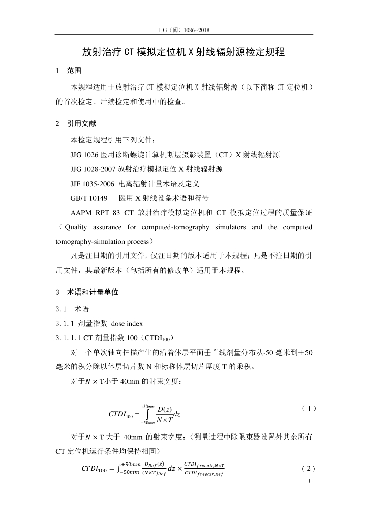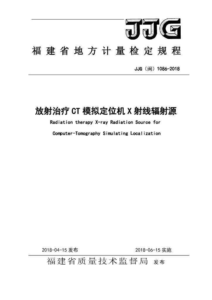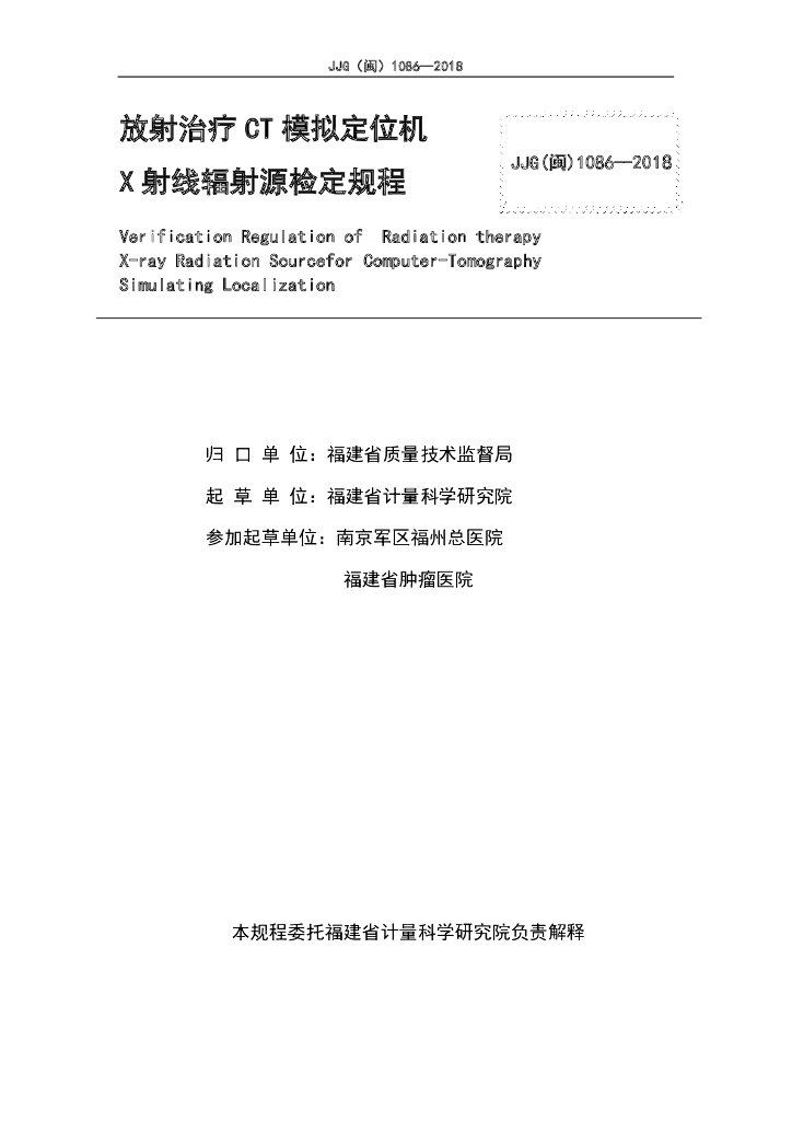 JJG(闽)1086-2018 放射治疗CT模拟定位机X射线辐射源检定规程