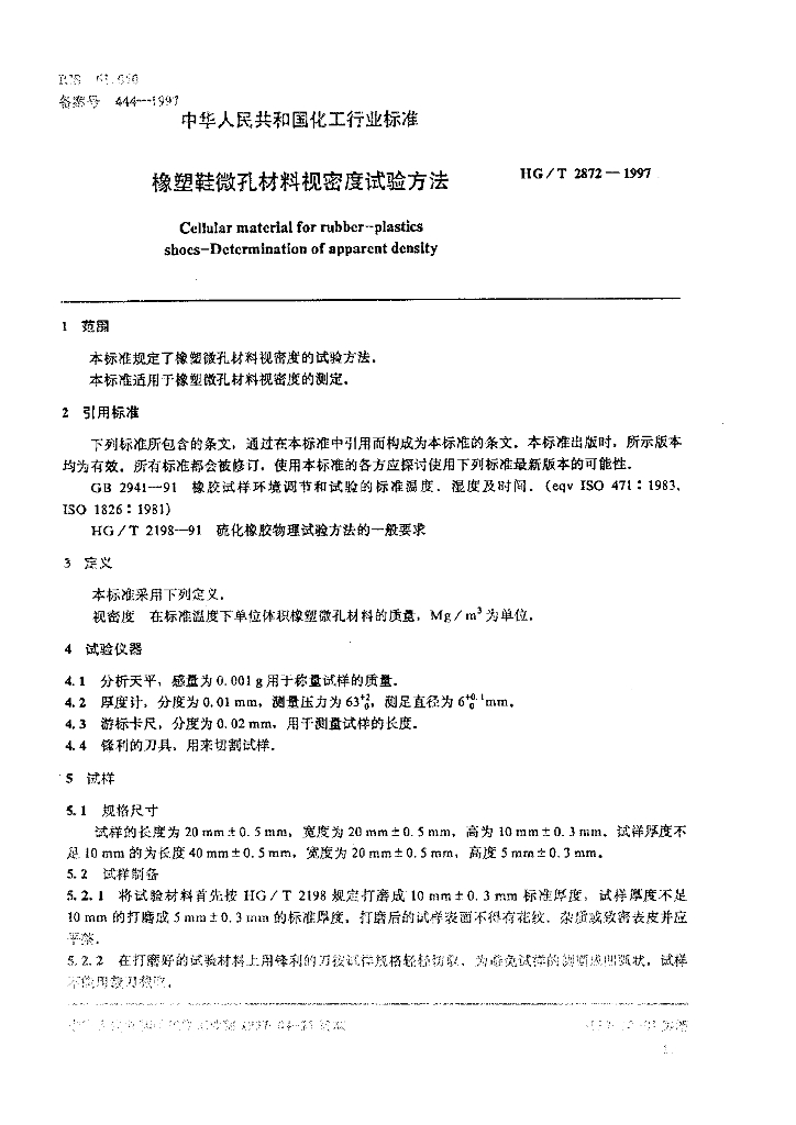 HG/T 2872-1997 橡塑鞋微孔材料视密度试验方法