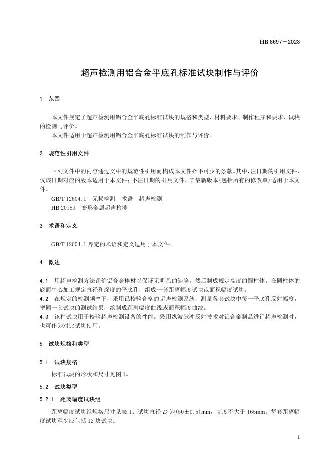 HB 8697-2023 超声检测用铝合金平底孔标准试块制作与评价