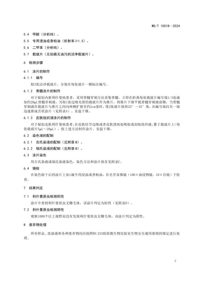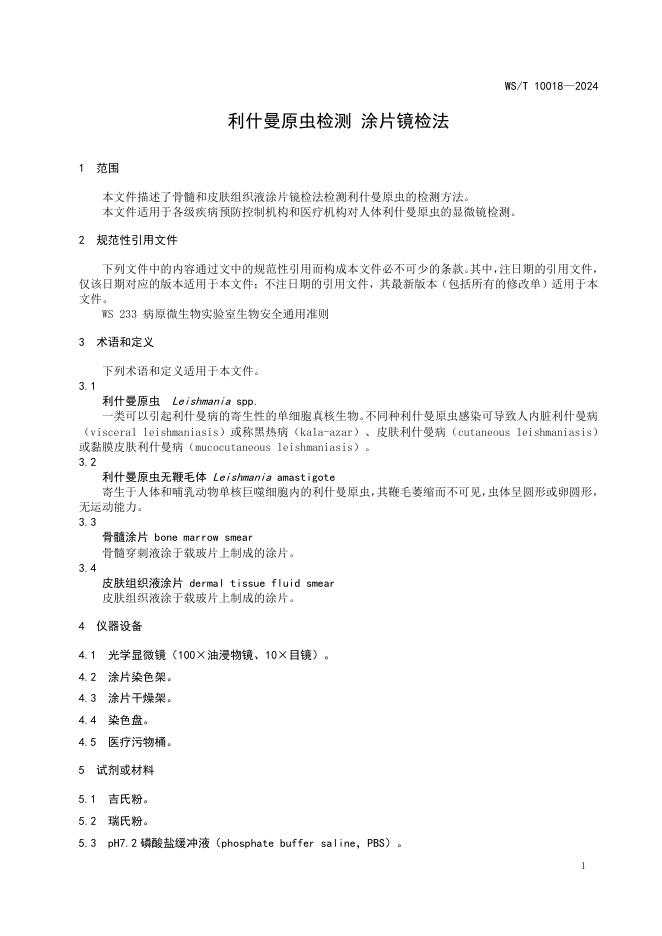 WS/T 10018-2024 利什曼原虫检测 涂片镜检法