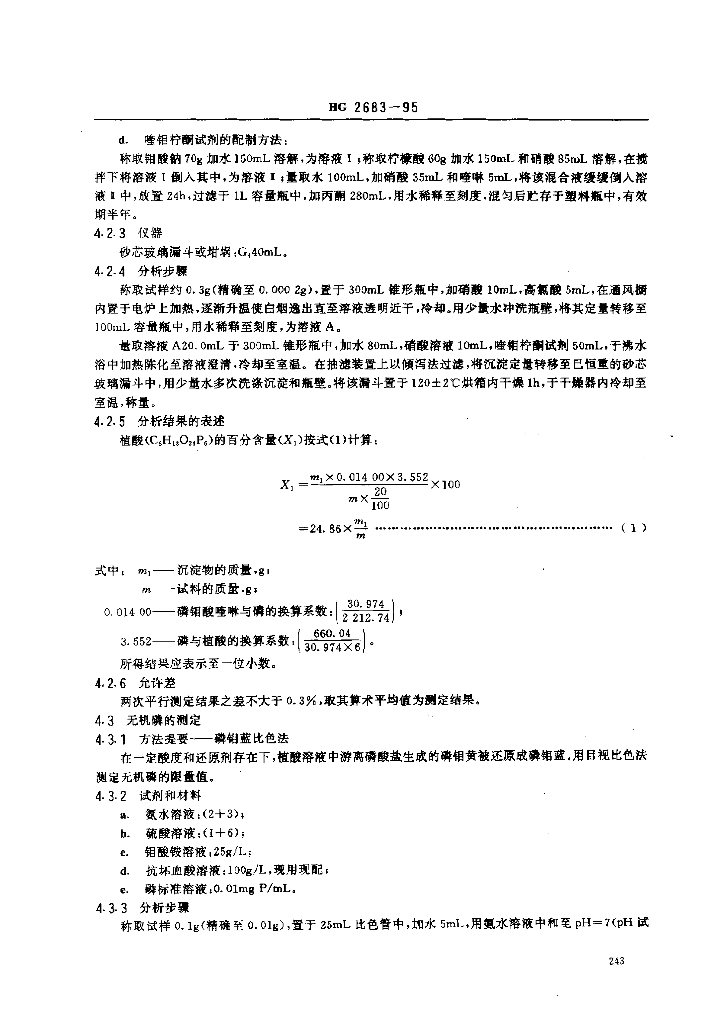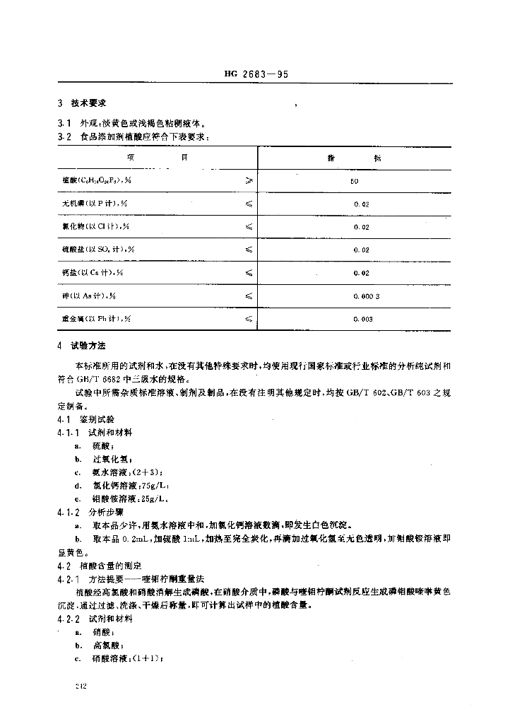 HG 2683-1995 食品添加剂 植酸(肌醇六磷酸)