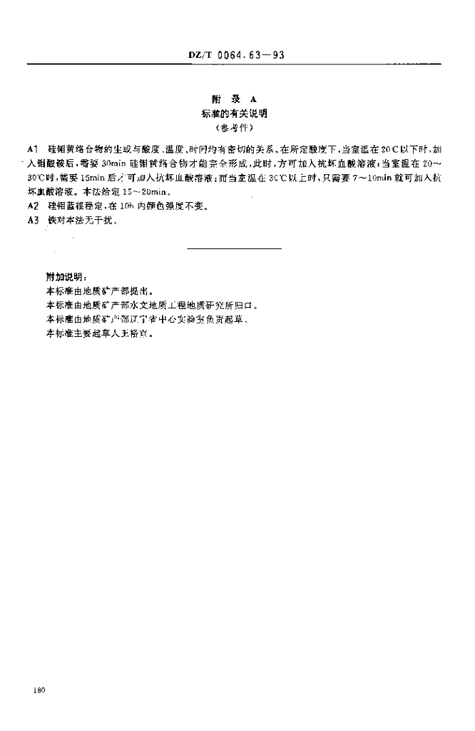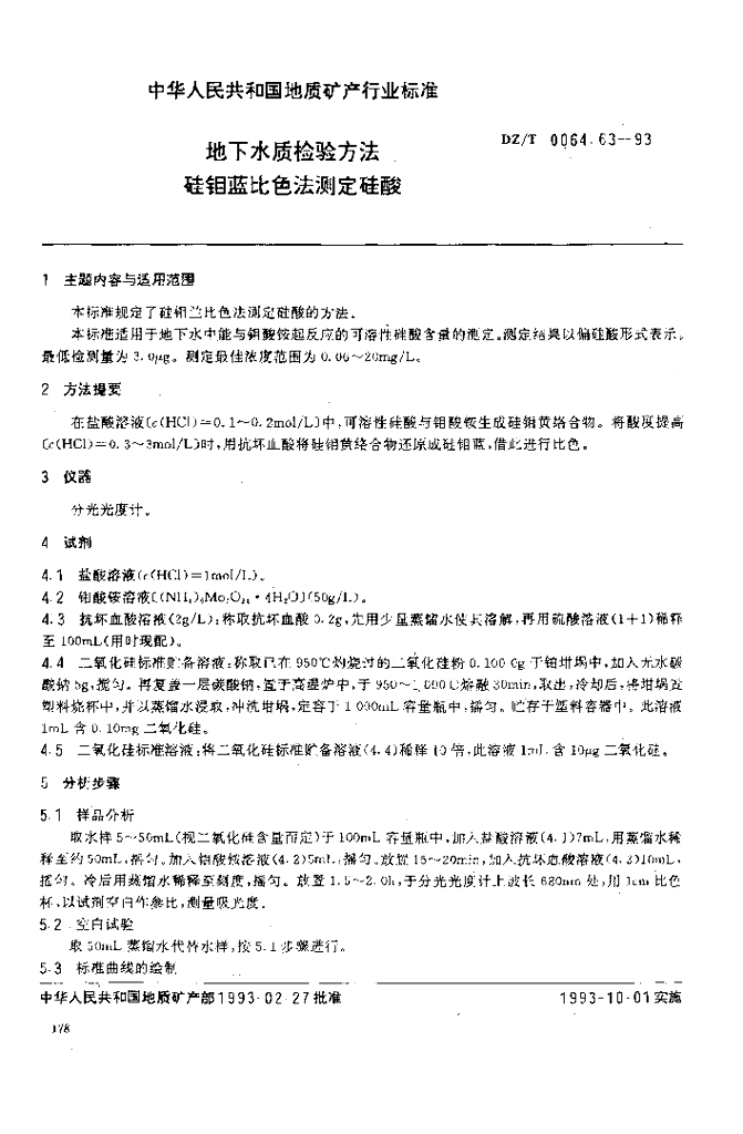 DZ/T 0064.63-1993 地下水质检验方法 硅钼蓝比色法测定硅酸