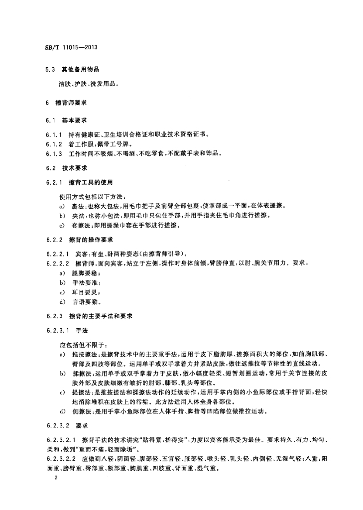 SB/T 11015-2013 沐浴业擦背技术要求及服务规范